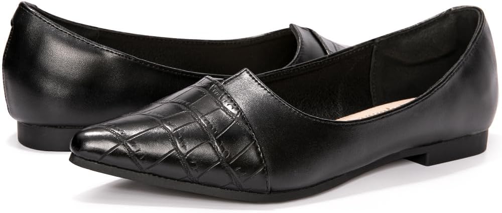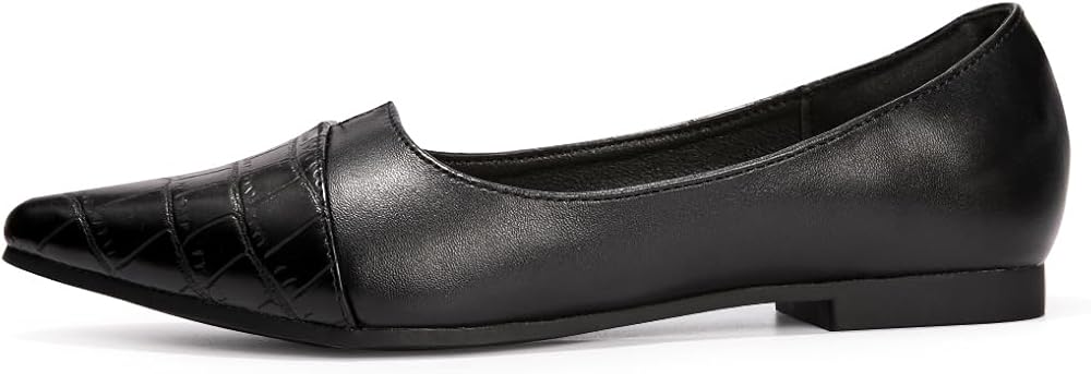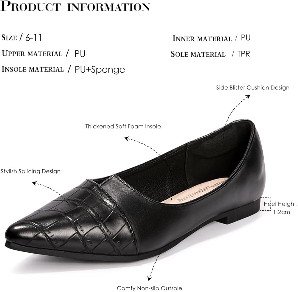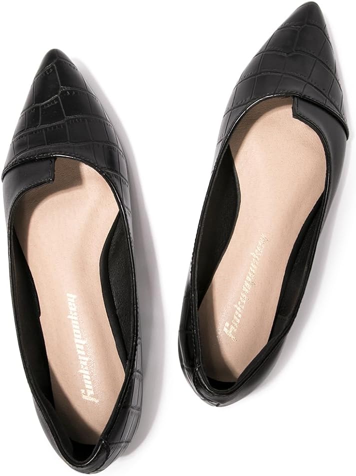 أحذية FUNKYMONKEY سوداء مسطحة للنساء، أحذية عمل مريحة بمقدمة مدببة سهلة الارتداء