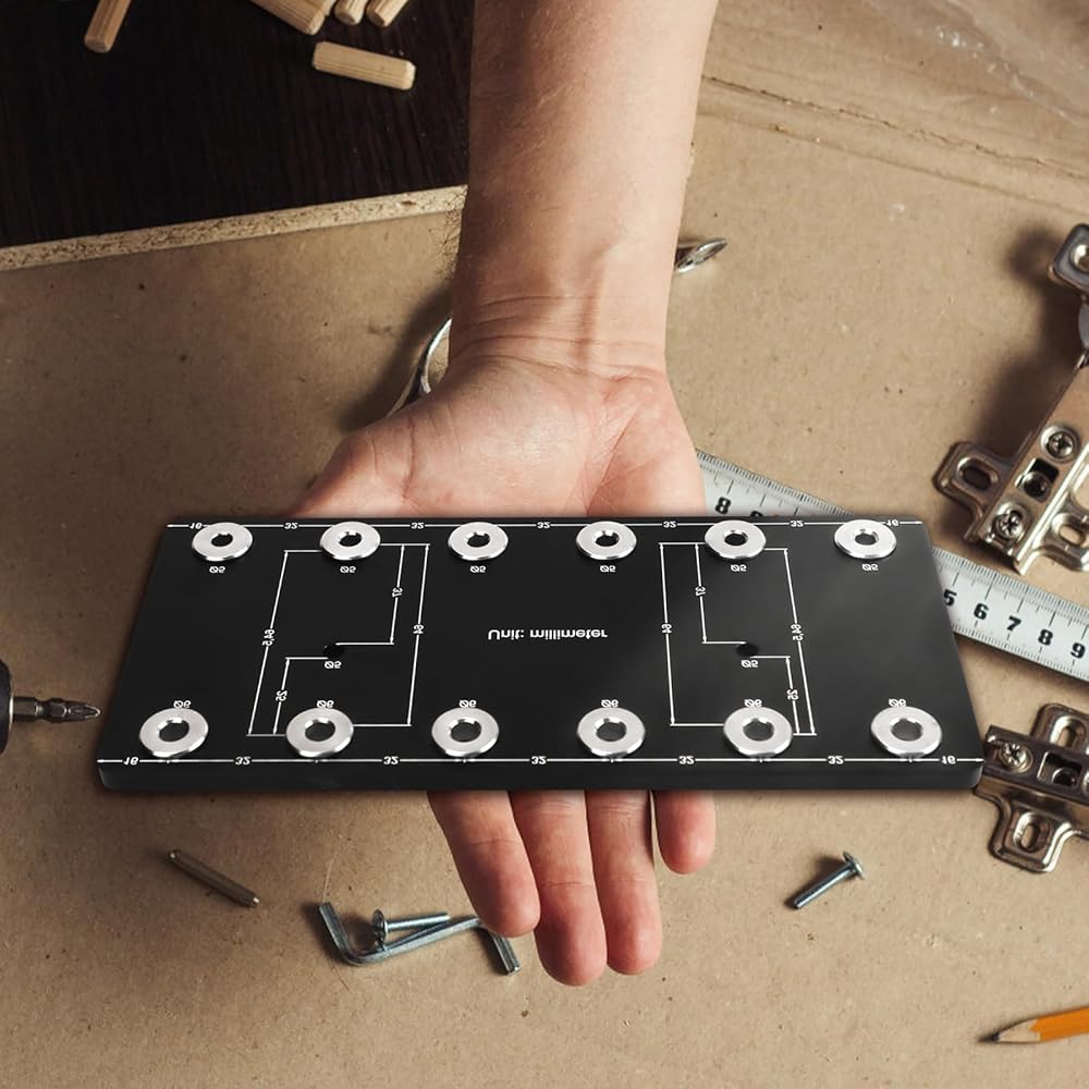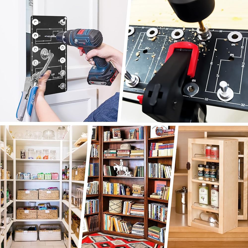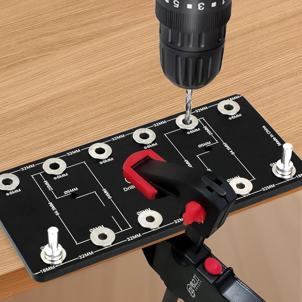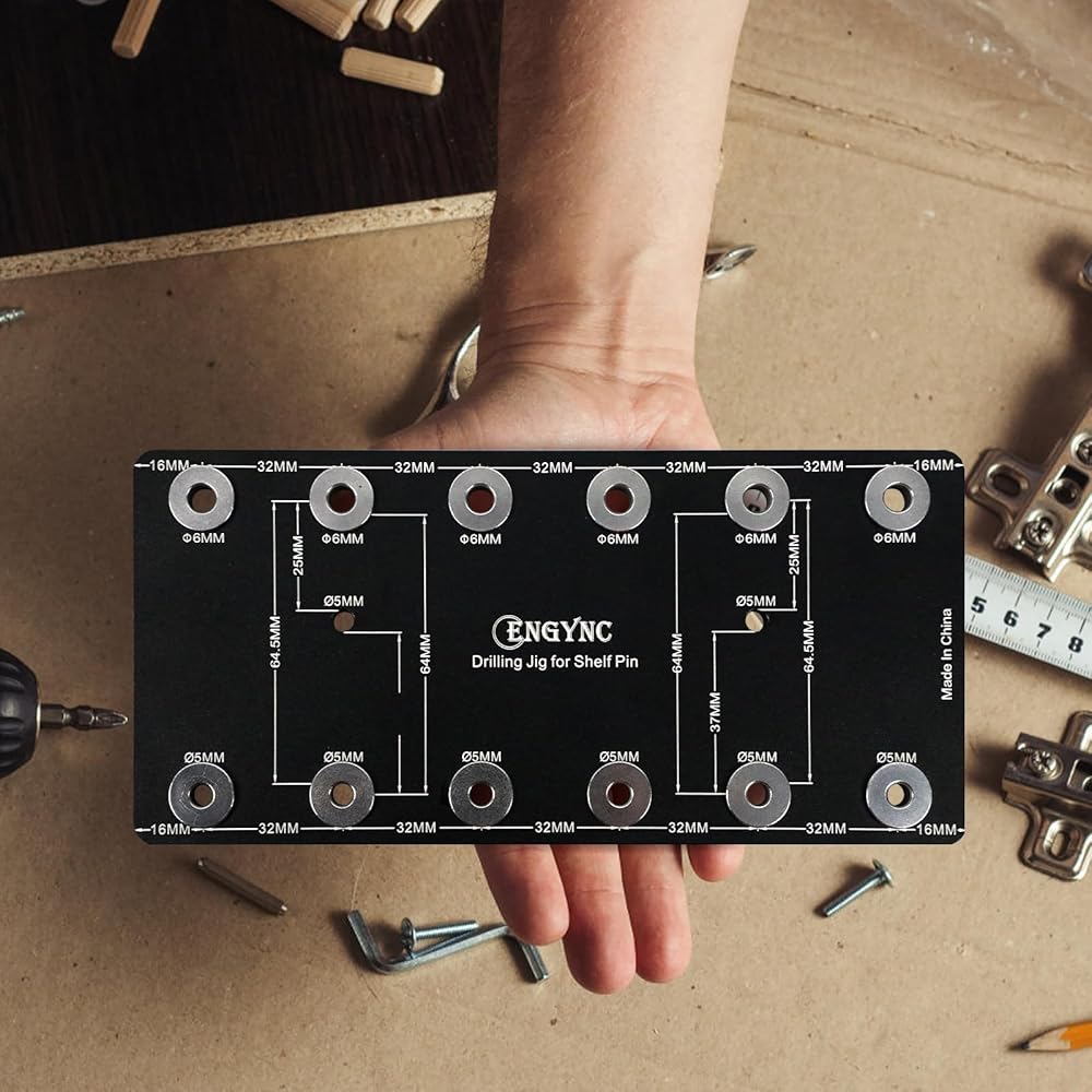 4. Carpentry Tool: This Shelf Drill guide has a 32 mm system to accurately place shelf pin holes for hinges and drawer slides.