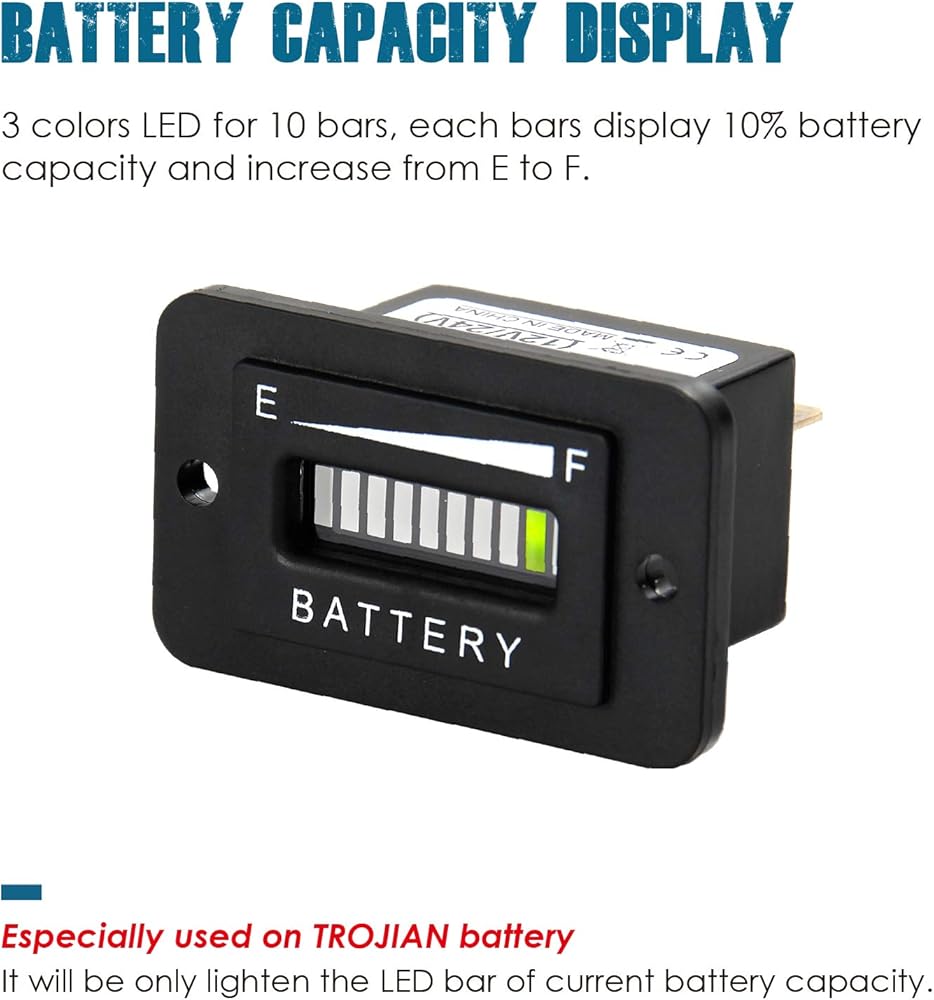 مقياس سعة البطارية: هذا جهاز مفيد وصغير الحجم لتحديد مقدار الطاقة المتبقية من جهد الشحن والتفريغ؛ إنها مناسبة لبطارية طروادة فقط.