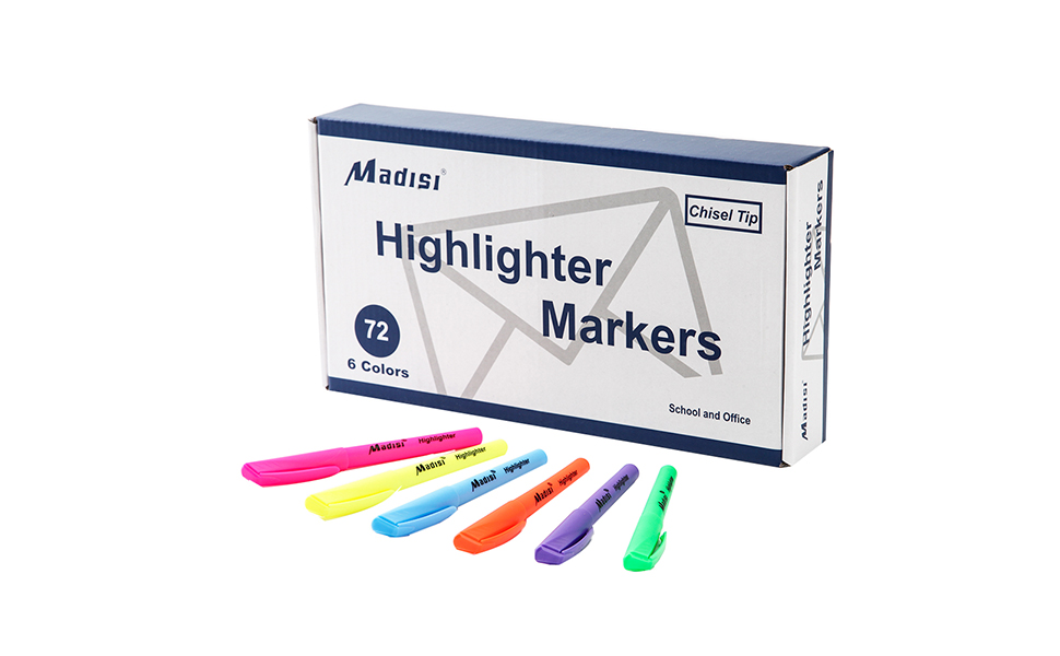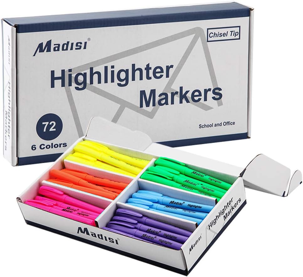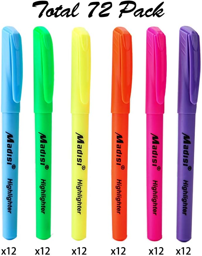 أقلام تحديد ماديسي، برأس مشطوف، ألوان متنوعة، عبوة كبيرة، 72 قطعة