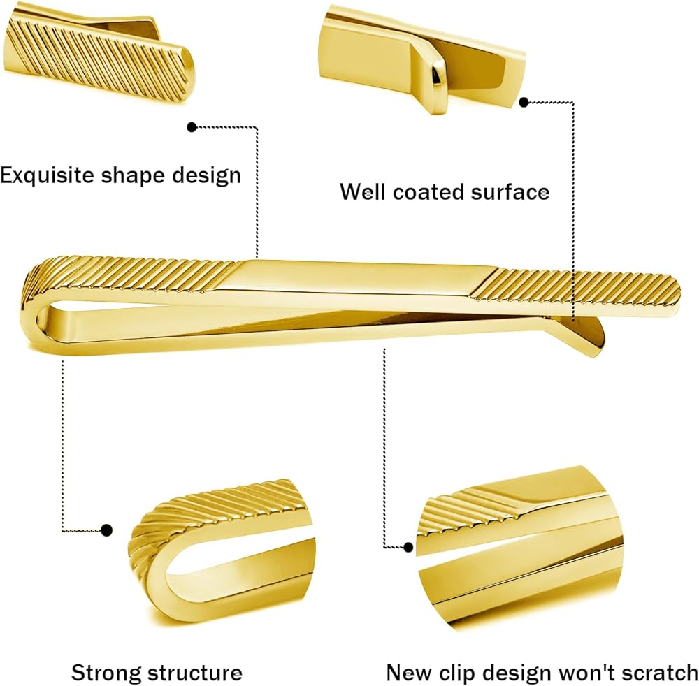 【مشبك ربط متين للرجال】مادة مشبك ربطة العنق مصنوعة من النحاس مع سطح مطلي بالكهرباء ومصقول، بالإضافة إلى دبابيس ومشابك ربط الرجال لها هيكل معدني قوي مع حواف ناعمة لملاءمة أكثر راحة ولن تخدش. الجلد أو الملابس.