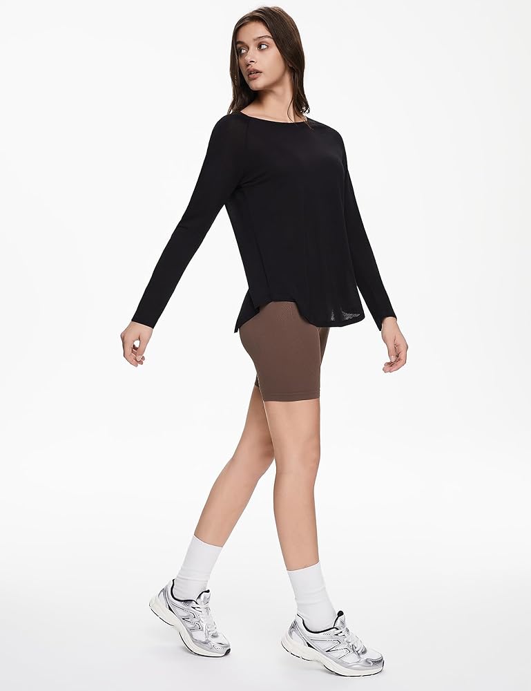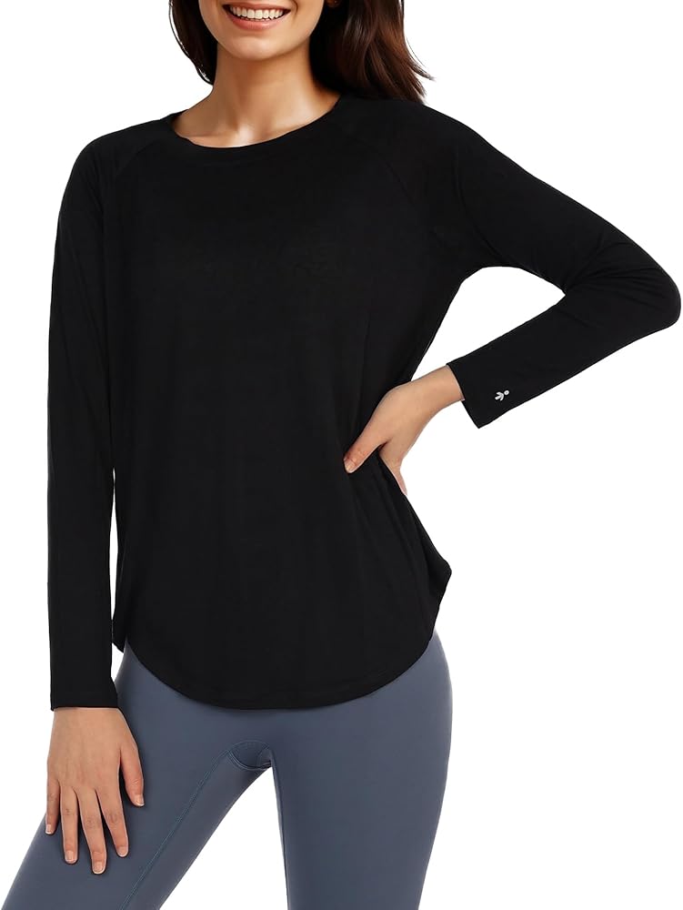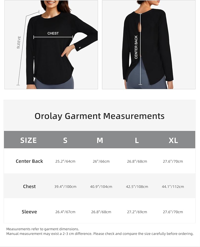 تي شيرت نسائي من Orolay بأكمام طويلة وخفيف الوزن وفضفاض مناسب لليوجا والشمس وحماية من الأشعة فوق البنفسجية في الهواء الطلق والتنزه في صالة الألعاب الرياضية