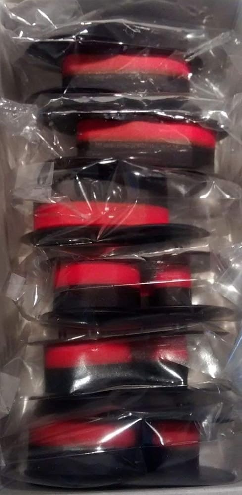 • 6 لفات حبر آلة حاسبة فردية عالية الجودة متوافقة مع أشرطة حبر النايلون | مختومة بشكل فردي | حبر أسود وأحمر.. تعمل أشرطة Canon هذه أيضًا مع الآلات الحاسبة والطابعات وأجهزة تسجيل النقد في نقاط البيع التالية