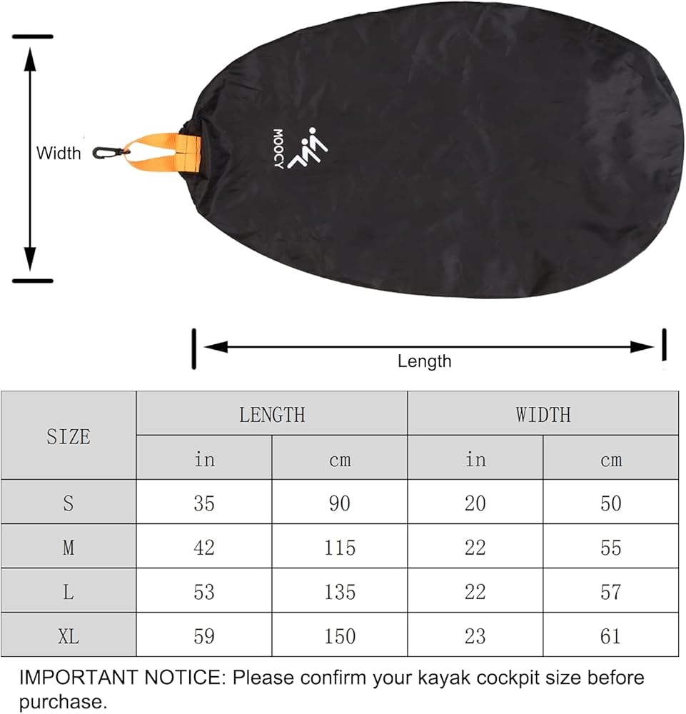 [حول المقاس] هناك 4 مقاسات للاختيار من بينها، S=35x20''(LxW)، M=42x22''(LxW)؛ الطول = 53 × 22 بوصة (الطول × العرض)؛ XL=59x23 بوصة (طول × عرض). ملاحظة: يرجى قياس حجم قمرة القيادة الخاصة بقوارب الكاياك قبل الشراء ويرجى الرجوع إلى جدول المقاسات بعناية لاختيار المقاس المناسب لقوارب الكاياك الخاصة بك.