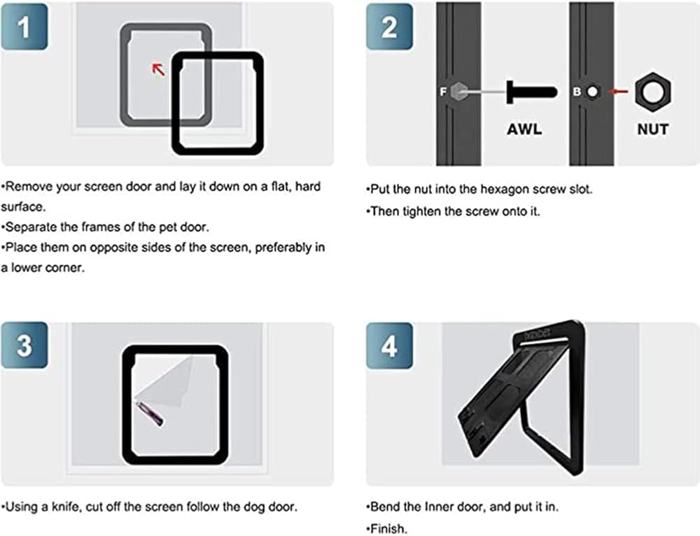 Material: Ultrahard ABS material and the screws will fix the dog screen door firmly;The heavy-weight pet flip door with high-quality locking tabs allows you to mount your exclusive door to an interior or exterior wall, and it automatically closes when your pet passes through the door. (The product is not equipped with magnets, customers need to buy the magnets themselves)