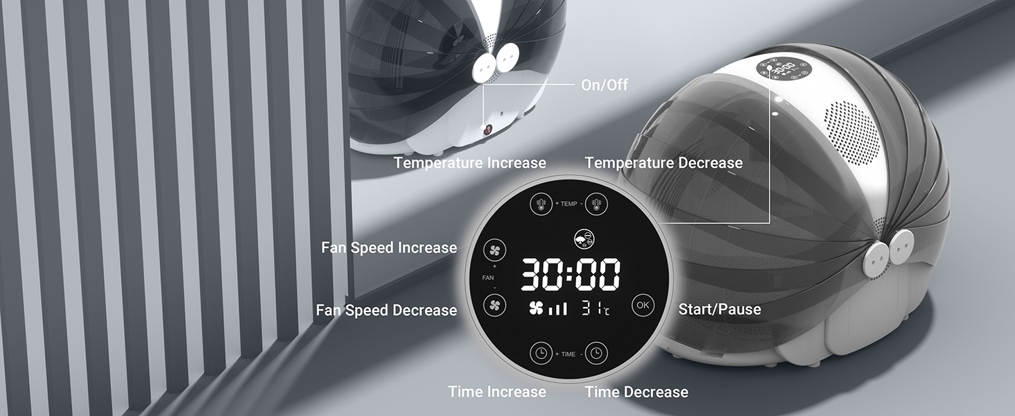 تحكم سهل مع لوحة لمس سهلة الاستخدام - يسمح بإعدادات 4 سرعات، والتحكم في درجة الحرارة 68-110 درجة فهرنهايت، ومؤقت 1-99 دقيقة لتلبية الاحتياجات المختلفة. وبنظرة سريعة فقط، يمكنك بسهولة فهم كيفية استخدامه. عند استخدامه لأول مرة، يرجى استخدام أقل سرعة رياح للسماح لحيوانك الأليف بالتعرف على صوت صديقه الجديد والتعرف عليه.