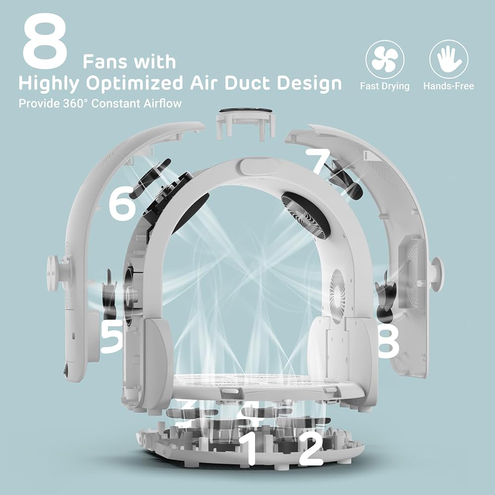8 مراوح، تجفيف سريع - استمتع بالتجفيف السريع لحيواناتك الأليفة من خلال نظام تدفق الهواء المتطور بزاوية 360 درجة والذي يغطي جسم حيوانك الأليف بالكامل بالتساوي، بما في ذلك تلك البقع التي يصعب الوصول إليها مثل البطن وأصابع القدم والإبطين. مع هذه الميزة المدروسة، يمكنك إبقاء يديك حرتين مع ضمان تجفيف كل بوصة من حيوانك الأليف بشكل فعال. يحتوي النظام على 8 مراوح عالية السرعة في الأسفل والجوانب والأعلى، والتي تعمل معًا لضمان التجفيف المناسب.