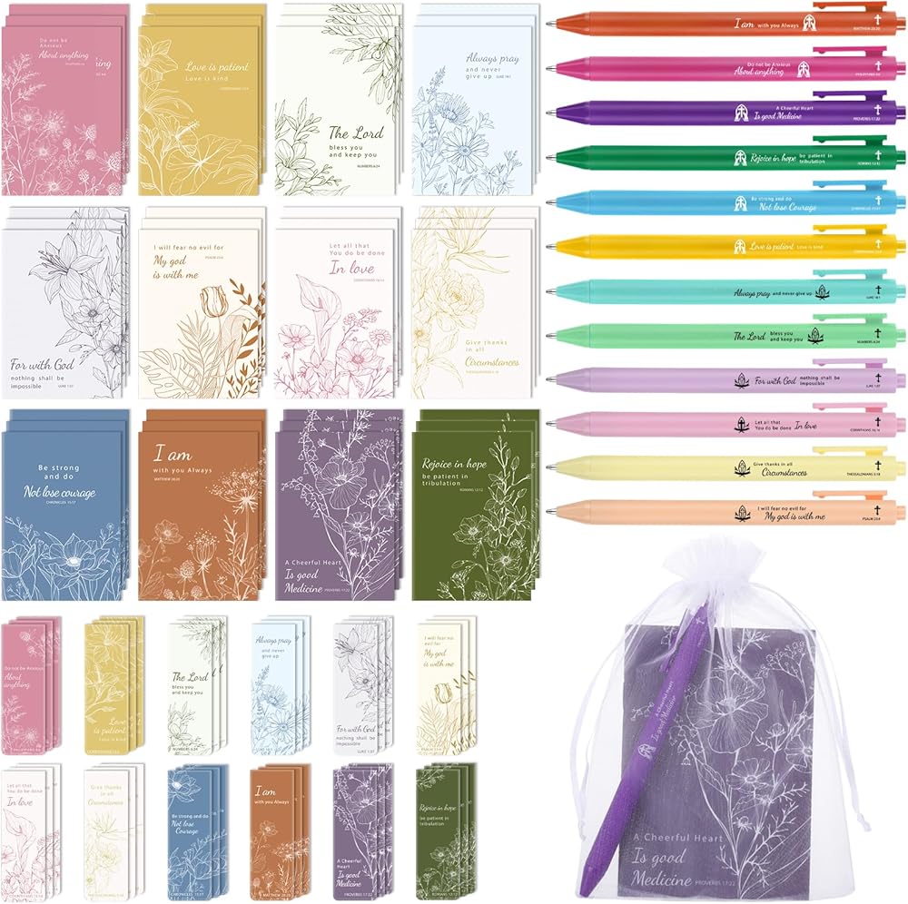 ✞【آية من الكتاب المقدس】في دفاتر الملاحظات والأقلام والإشارات المرجعية، توجد عبارات من الكتاب المقدس وصلبان من الكتاب المقدس. يحتوي المنتج أيضًا على اقتباسات ملهمة يمكنها بسهولة تذكير نفسك والآخرين بمواجهة الحياة بشكل إيجابي.