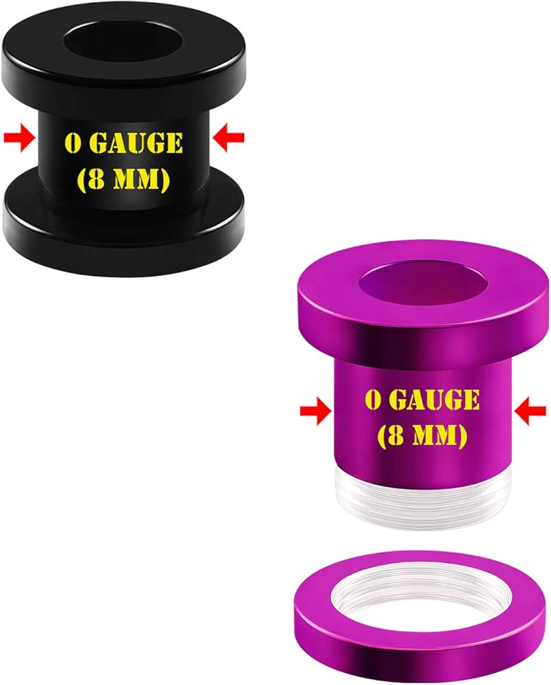 2 Pairs, A pair of Black Acrylic Screw Ear Piercing . A pair of Purple AcrylicGauge Screw Earrings . 4 gauge sets choices ;2g (6mm), 0g (8mm), 00g (10mm) and 1/2 inch (12mm), please choose one. Items will be packed in nice satin bag.