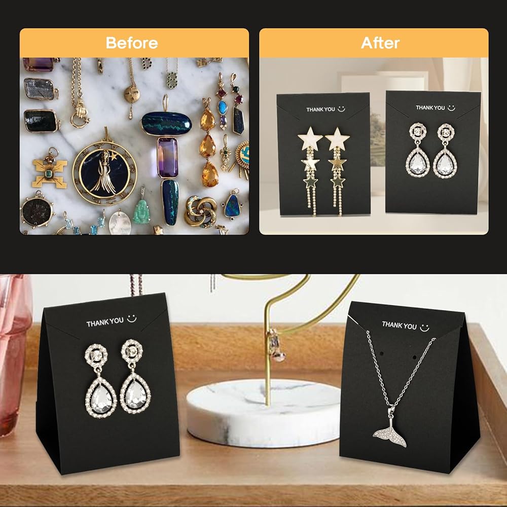 • 【بطاقات القرط سهلة الاستخدام】يمكنك تركيب أقراطك الرقيقة مباشرة من خلال الفتحات المثقوبة مسبقًا على بطاقات القرط. يمكن لبطاقات الأقراط أن تجعل أقراطك تبدو أكثر تطورًا وهي مصنوعة بعناية فائقة. يمكنك تنظيم وتخزين أقراطك بشكل أفضل، وهو أمر مريح للغاية عند بيعها أو استخدامها بنفسك.