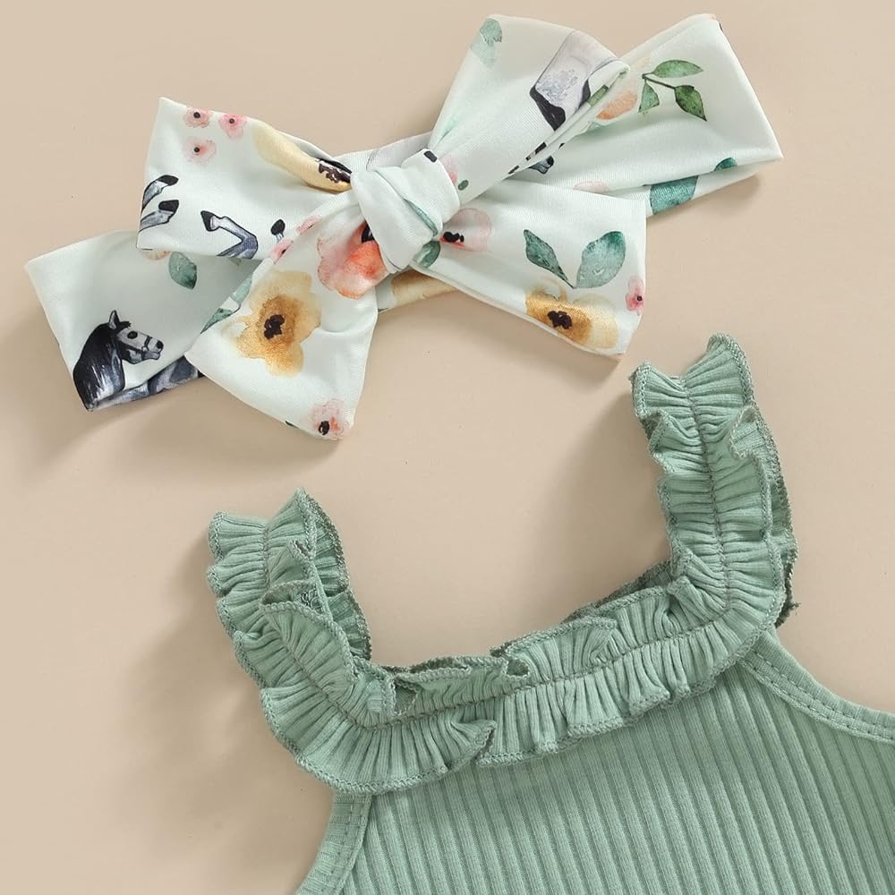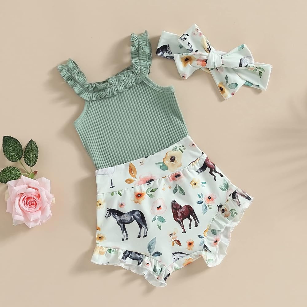 Infant Baby Girls 3Pcs Summer Outfits Sleeveless Romper Tops + Taco/Avocado Print Shorts + Headband Set Newborn Clothes
