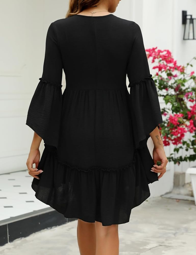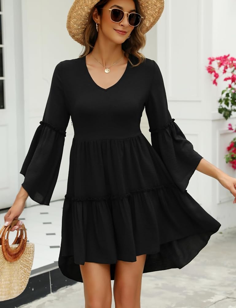 أغطية جذابة وجذابة: تتميز بتصميم كم جرس 3/4 مع سحاب جانبي مخفي. يتميز بحاشية غير منتظمة ذات طبقات عالية ومنخفضة شفافة قليلاً، مما يضيف لمسة من الأناقة والأنوثة.
