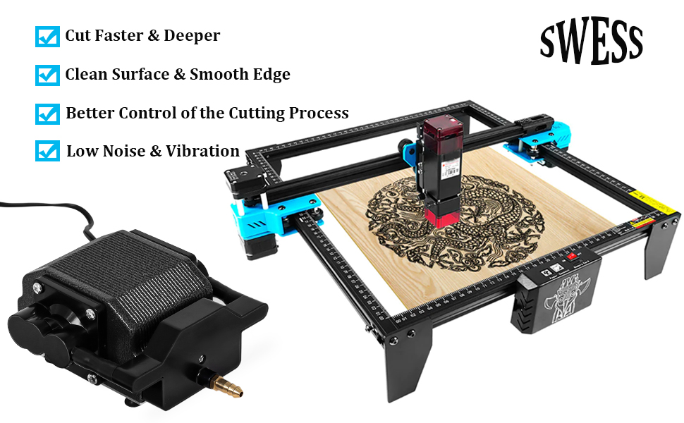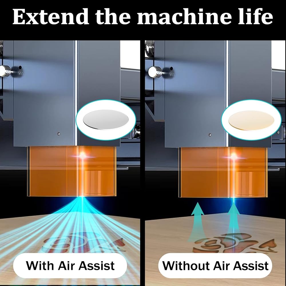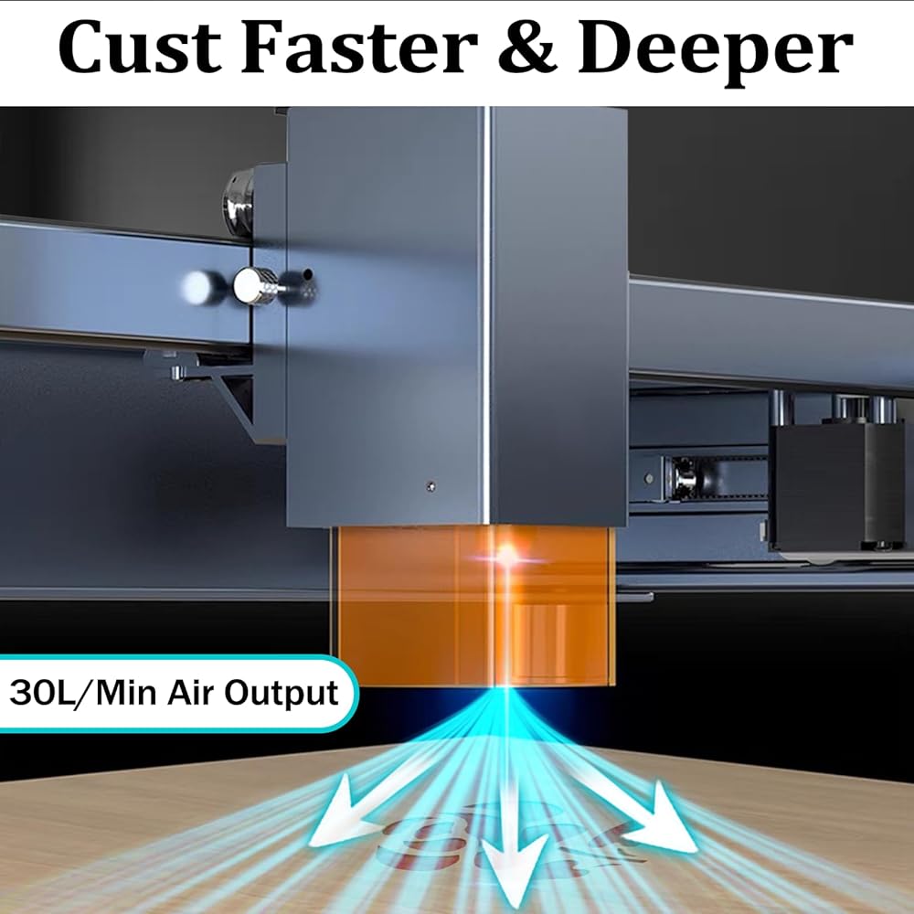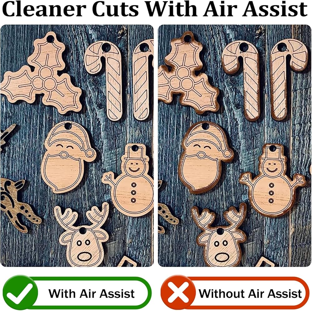 ❤【قص أسرع وأعمق】-- تم تجهيز مساعدة الهواء بتدفق هواء قابل للتعديل من 0 إلى 30 لتر/الدقيقة، والذي يمكن أن ينفخ الدخان والحطام الناتج عن عمل النقش بالليزر، ويساعد النقش على القطع بشكل أسرع وأعمق، وتحسين كفاءة الليزر. وتوفير وقتك.