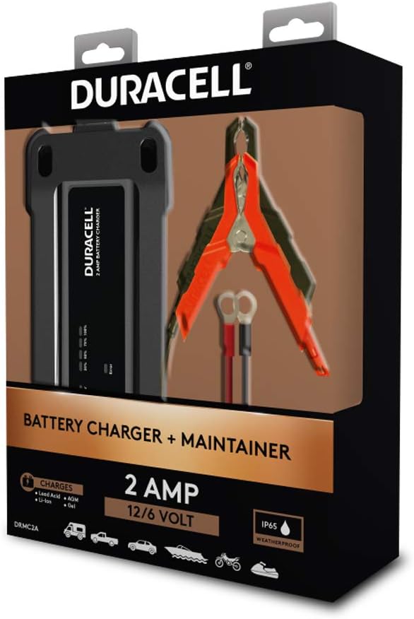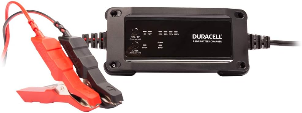 شاحن صيانة بطارية دوراسيل 2 أمبير لبطاريات SLA وAGM وبطاريات ليثيوم أيون 6 فولت و12 فولت