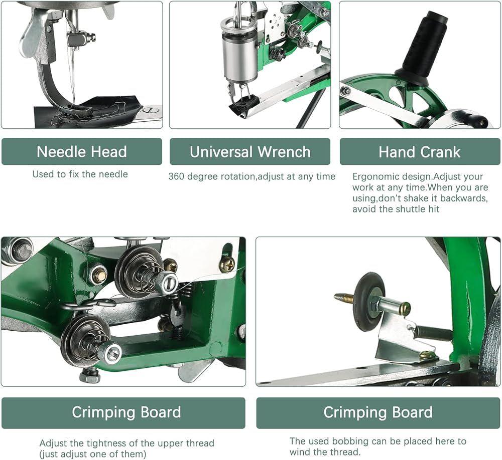 • سهلة التجميع: تحتاج إلى تجميعها بنفسك، ومع ذلك، فهي سهلة جدًا ولا تستغرق سوى بضع دقائق. ستقوم ماكينة الخياطة الجلدية هذه بالخياطة بشكل موثوق وجيد بمجرد تجميعها بشكل صحيح. قبل العمل، أضف القليل من زيت التشحيم إلى الأجزاء المتحركة.