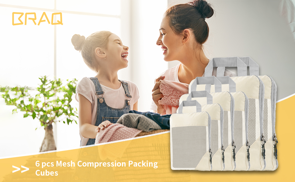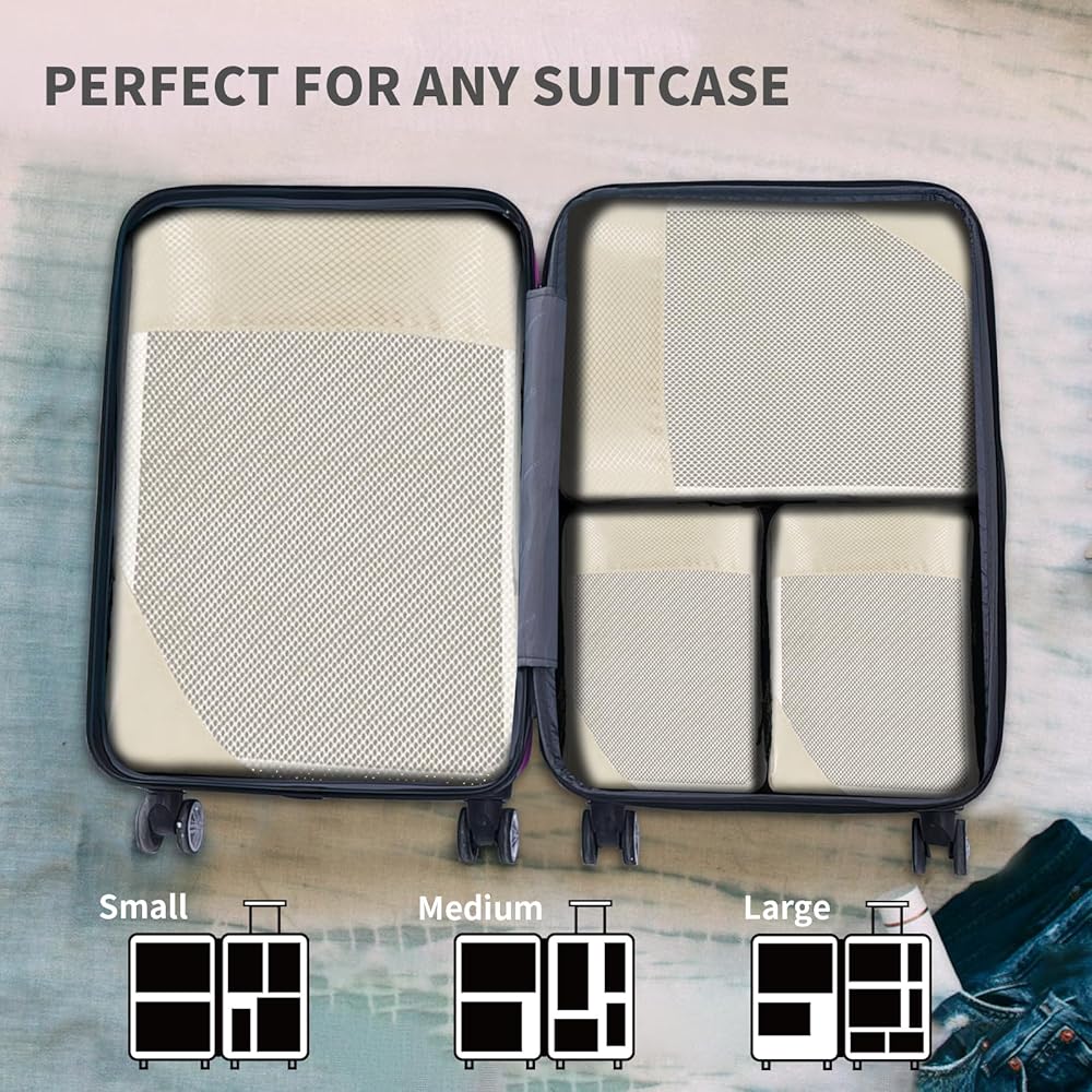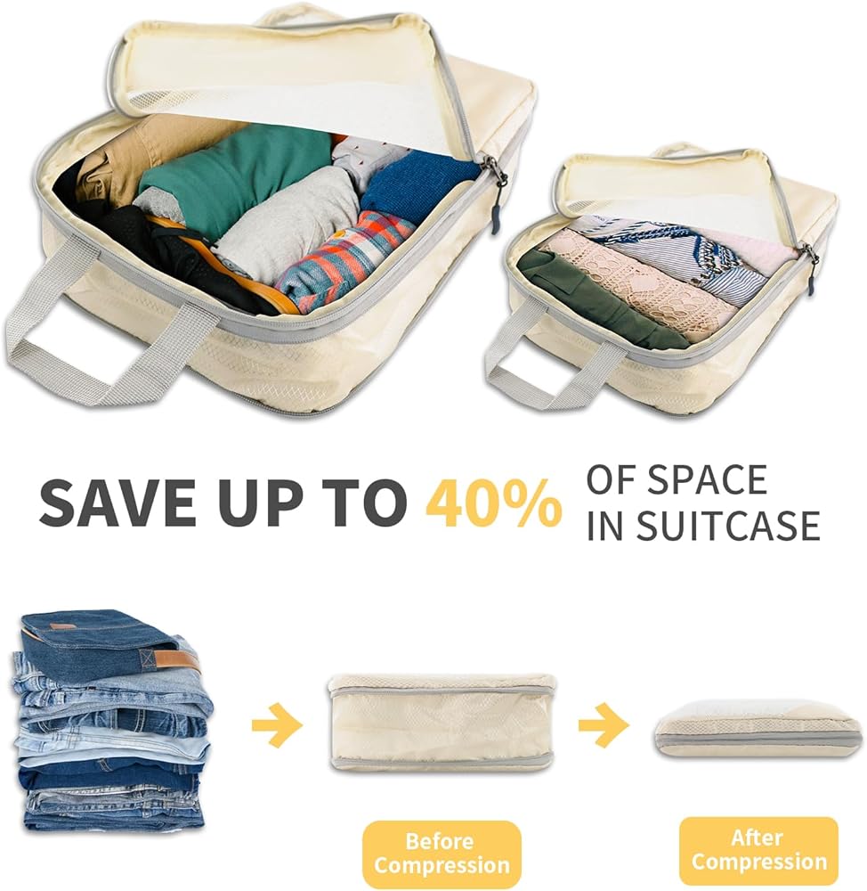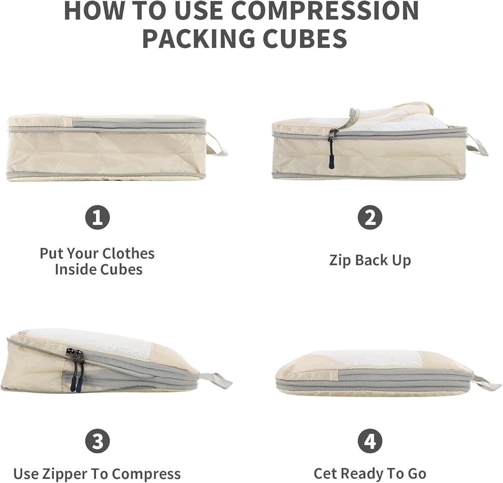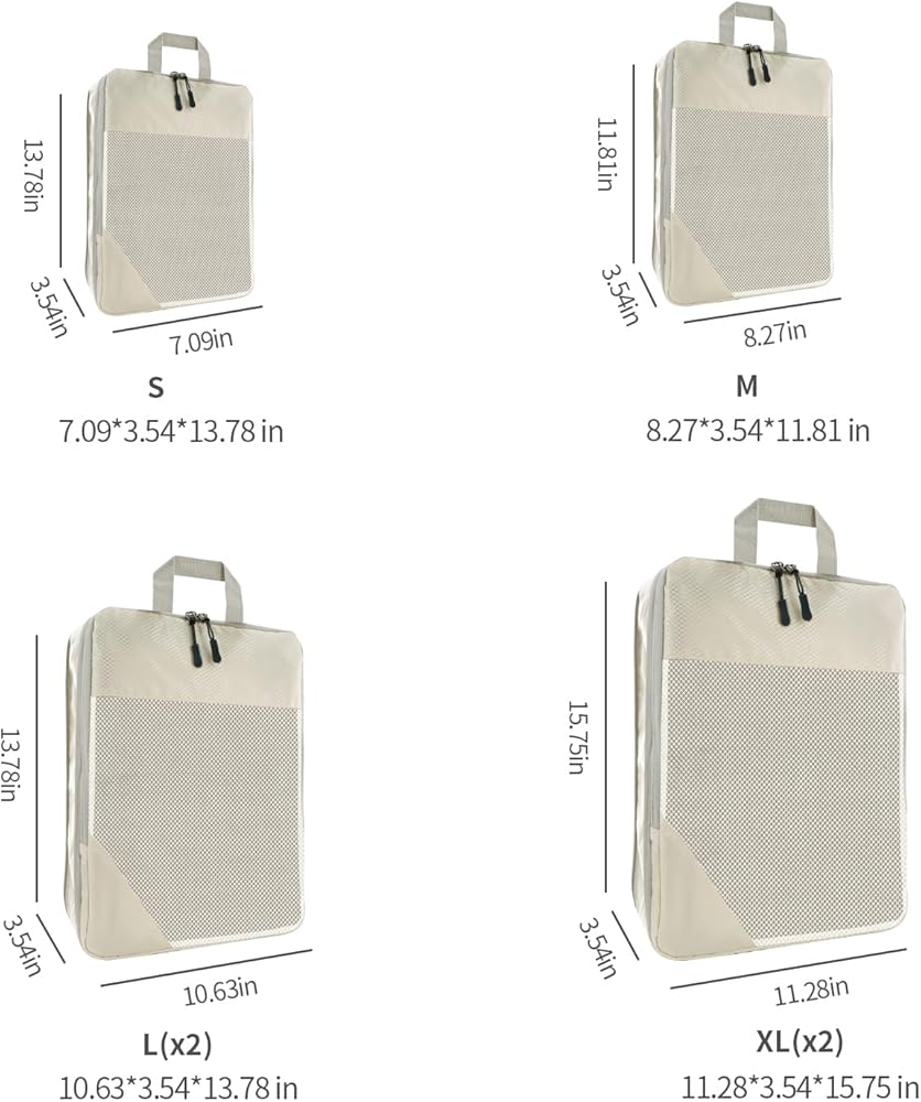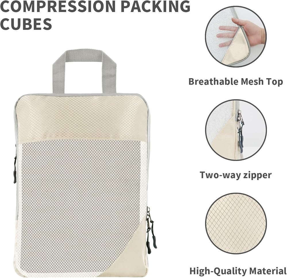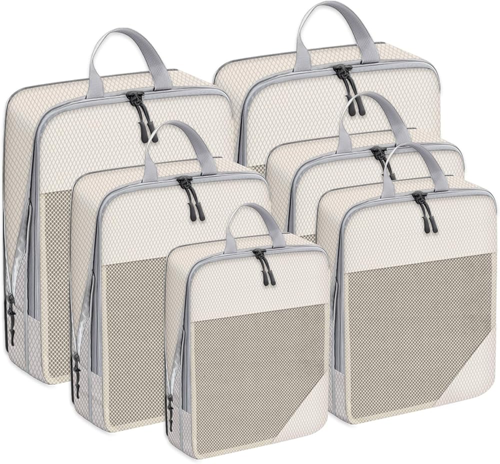 6 مجموعات من مكعبات التعبئة المضغوطة لحقائب السفر، وحقائب تنظيم السفر للأمتعة، وحقائب ضغط السفر للتعبئة كإكسسوارات سفر للنساء والرجال وأساسيات السفر (بيج)