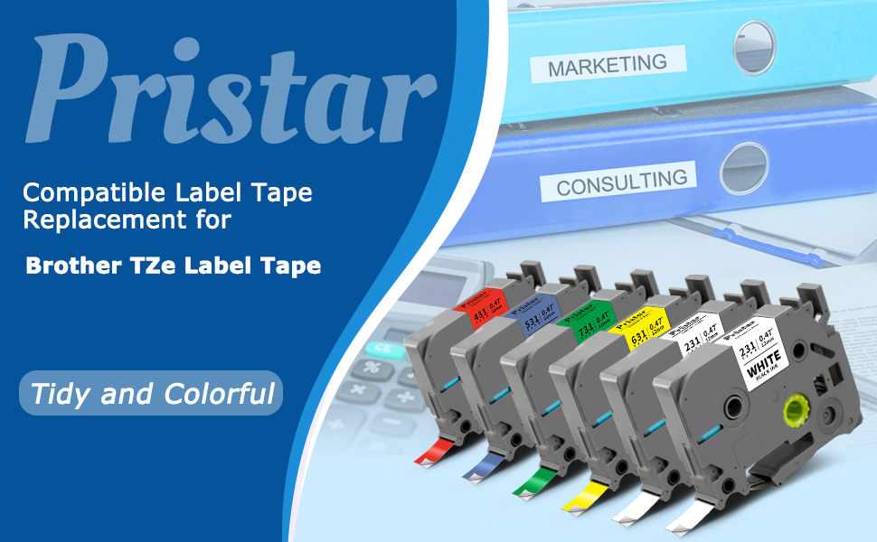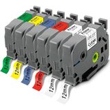 Pristar 6 عبوات متوافقة مع Brother P Touch Label Tape بديل لـ TZe-231 TZ-231 TZe-431 TZe-531 TZe-631 TZe-731 TZe 12 مم 0.47 شريط صانع ملصقات مصفح متعدد الألوان لـ PT-D210 H110 D220 D410 D600