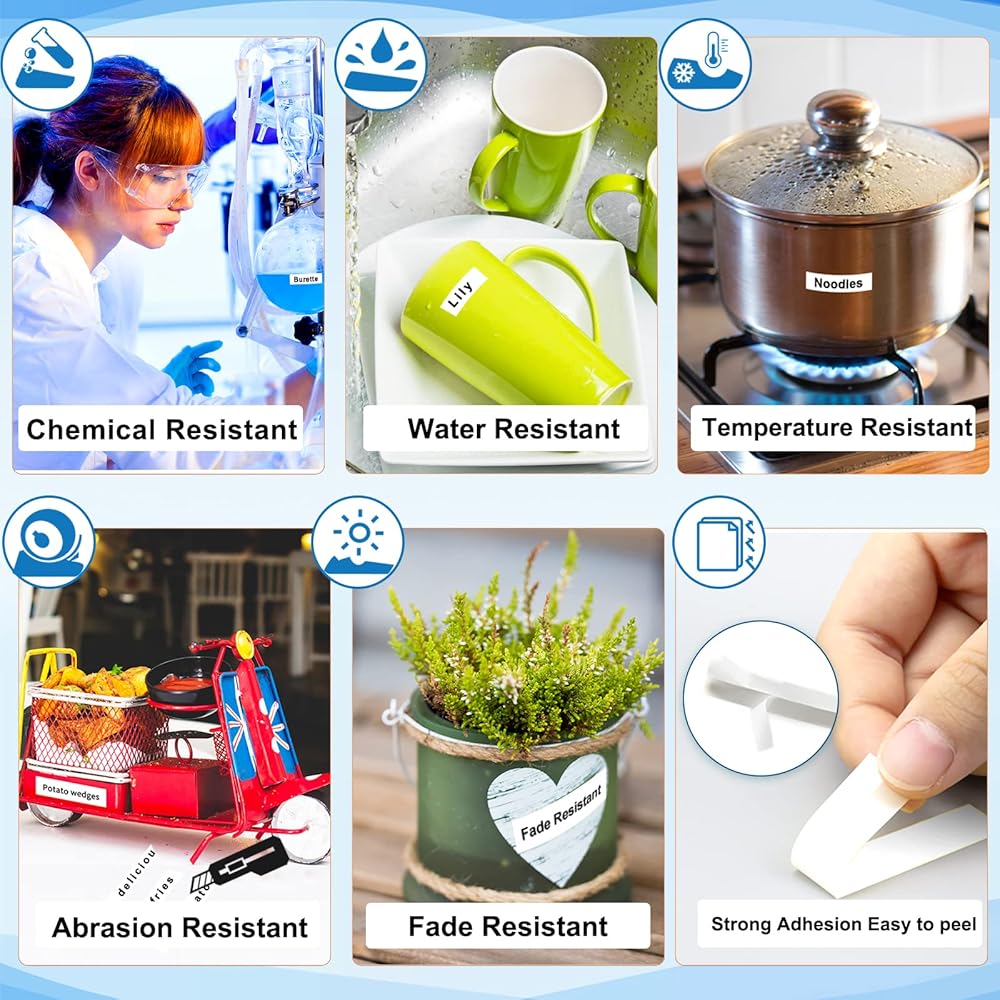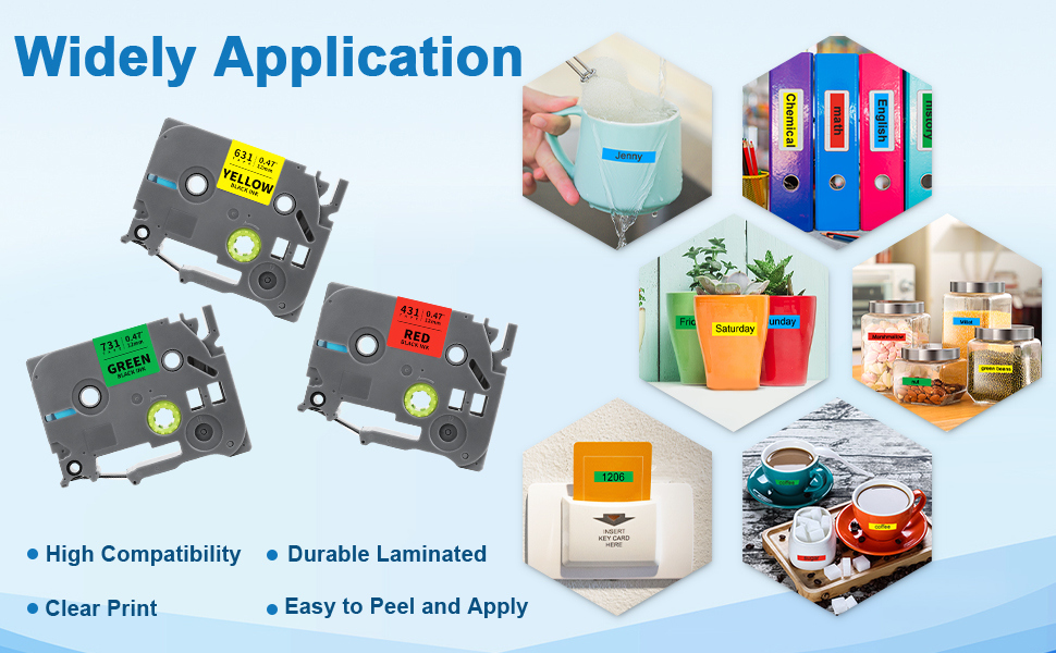 • مناسبة للاستخدام الداخلي والخارجي. تستخدم عادة في المكتب، المصنع، المدرسة، المستشفى، المنزل، إلخ. مثل مجلدات الملصقات، المنتجات المنزلية، المكونات، الأجزاء الإلكترونية، مفتاح الطاقة، إلخ. تنظم أشرطة الملصقات Pristar مكان عملك بشكل مثالي وتجعل عملك أكثر كفاءة.