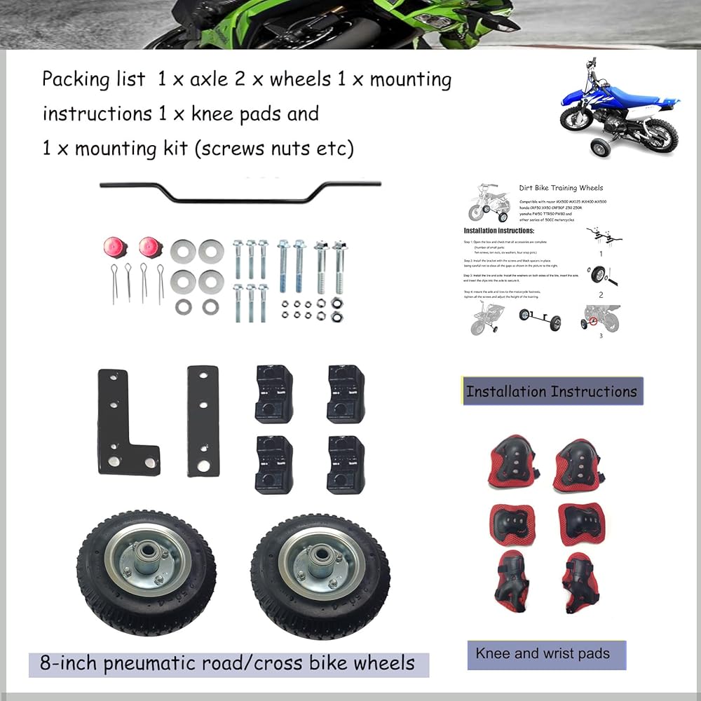 توافق واسع: تتوافق عجلات تدريب الدراجات النارية العالمية لدينا مع معظم الدراجات الترابية الكهربائية/الغازية 50cc 49cc، متوافقة مع Honda CRF50 XR50 CRF50F Z50 Z50R، Razor MX500 MX125 MX400 MX500، Yamaha PW50 TTR50 PW80، HIBOY DK1، KTM، Suzuki، Cobra، Oset دراجات نارية من سلسلة 50cc و49cc وما إلى ذلك. إذا لم تكن متأكدًا، أرسل لنا بريدًا إلكترونيًا وسنكون سعداء بمساعدتك على التأكيد!