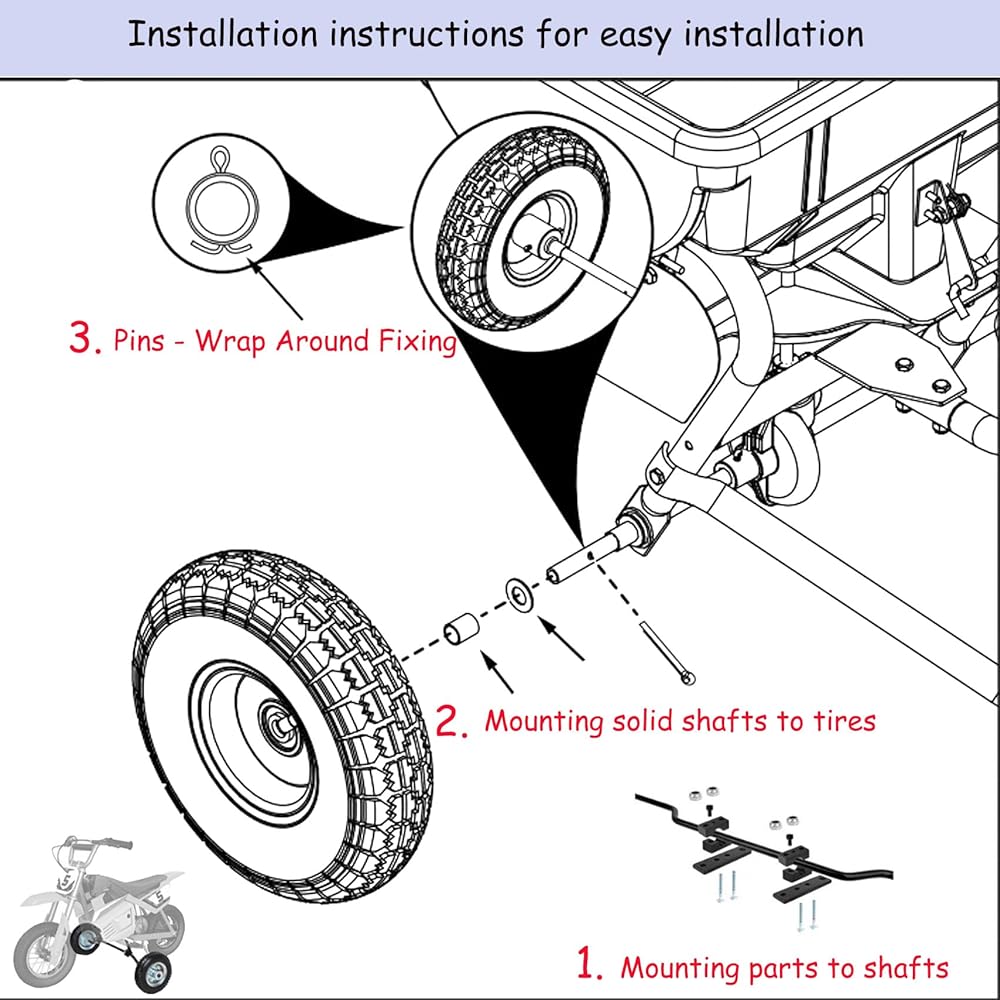 تركيب سهل للعجلات المساعدة: نأتي مع تعليمات التثبيت التفصيلية التي عادة ما تستغرق عشر دقائق فقط للتثبيت. يمكنك أيضًا البحث عن مقاطع فيديو على موقع (يوتيوب) لمساعدتك في التثبيت. نحن نؤمن بأن عجلة المساعدة الخاصة بنا هي الرفيق الأفضل لطفلك لتعلم قيادة الدراجة النارية.