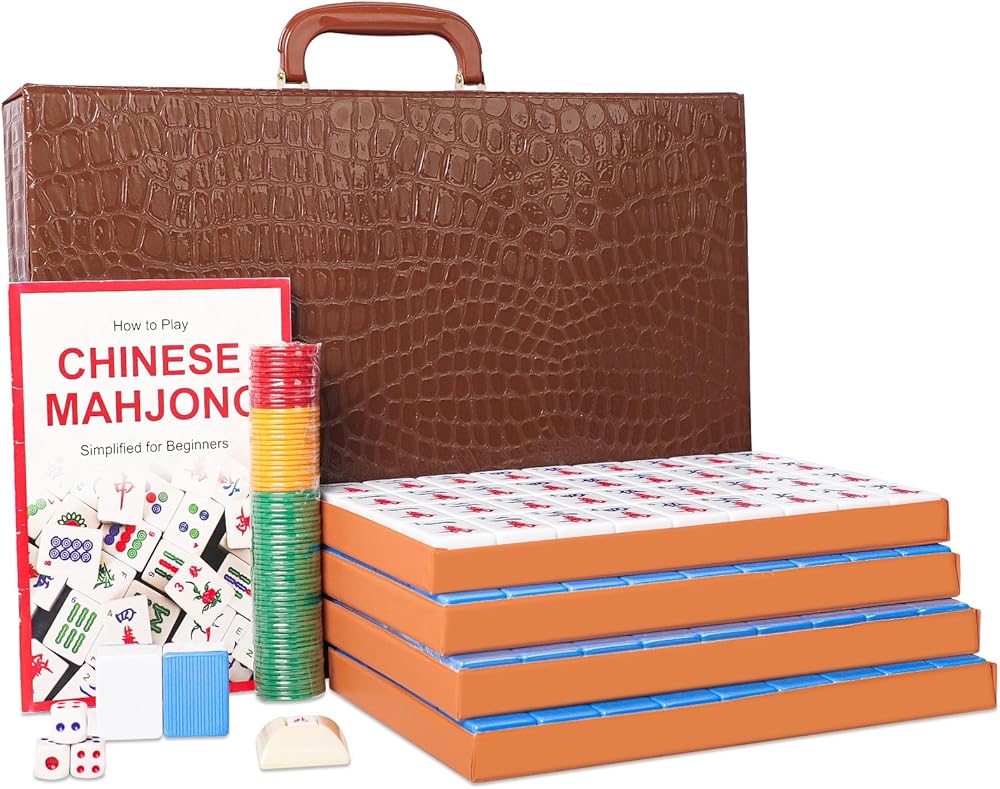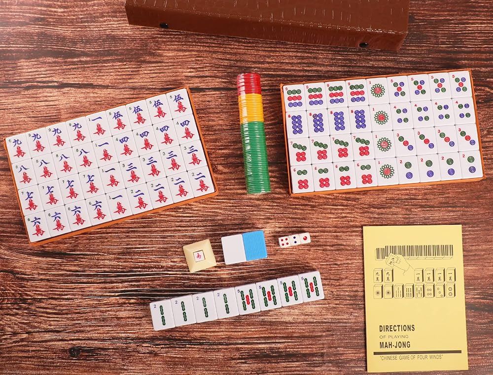 مجموعة الماجونج الصينية الكلاسيكية: مجموعة الماجونج الاحترافية هذه مثالية لألعاب الماجونج الصينية التقليدية، ولا تشمل الجوكر والدافعين، للقواعد الصينية فقط.