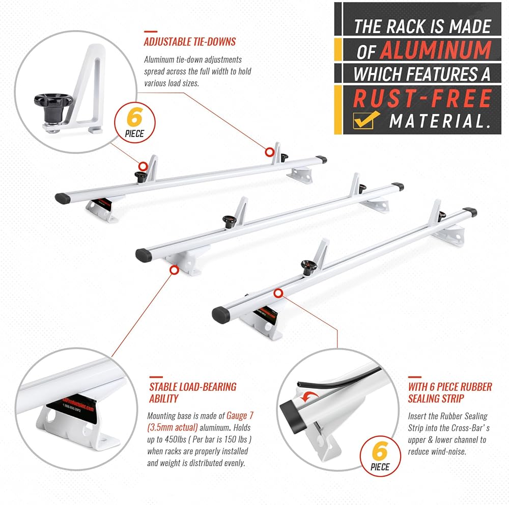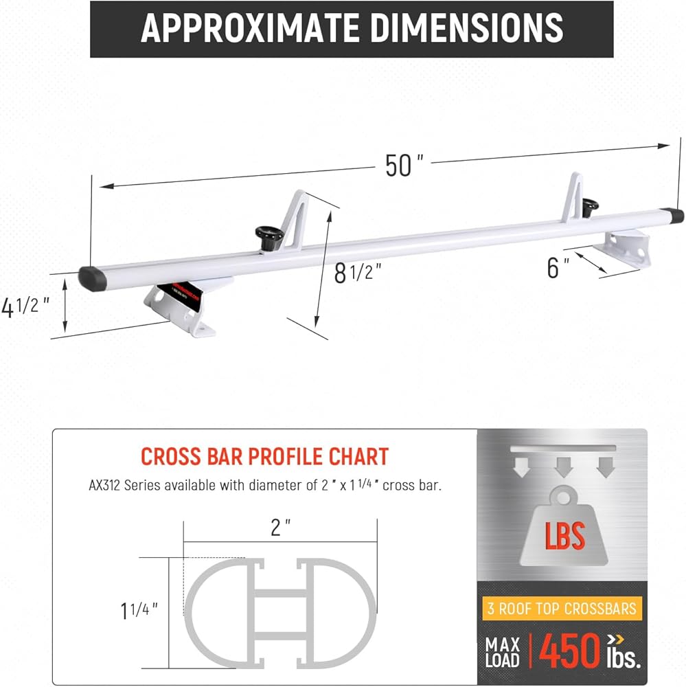 قضبان متقاطعة من الألومنيوم طراز AA-Racks طراز AX312 مناسبة لـ 2013-On NV200/ 2014-On Transit Connect/ 2013-2017 City Express، 3 Bar 50 بوصة - أبيض