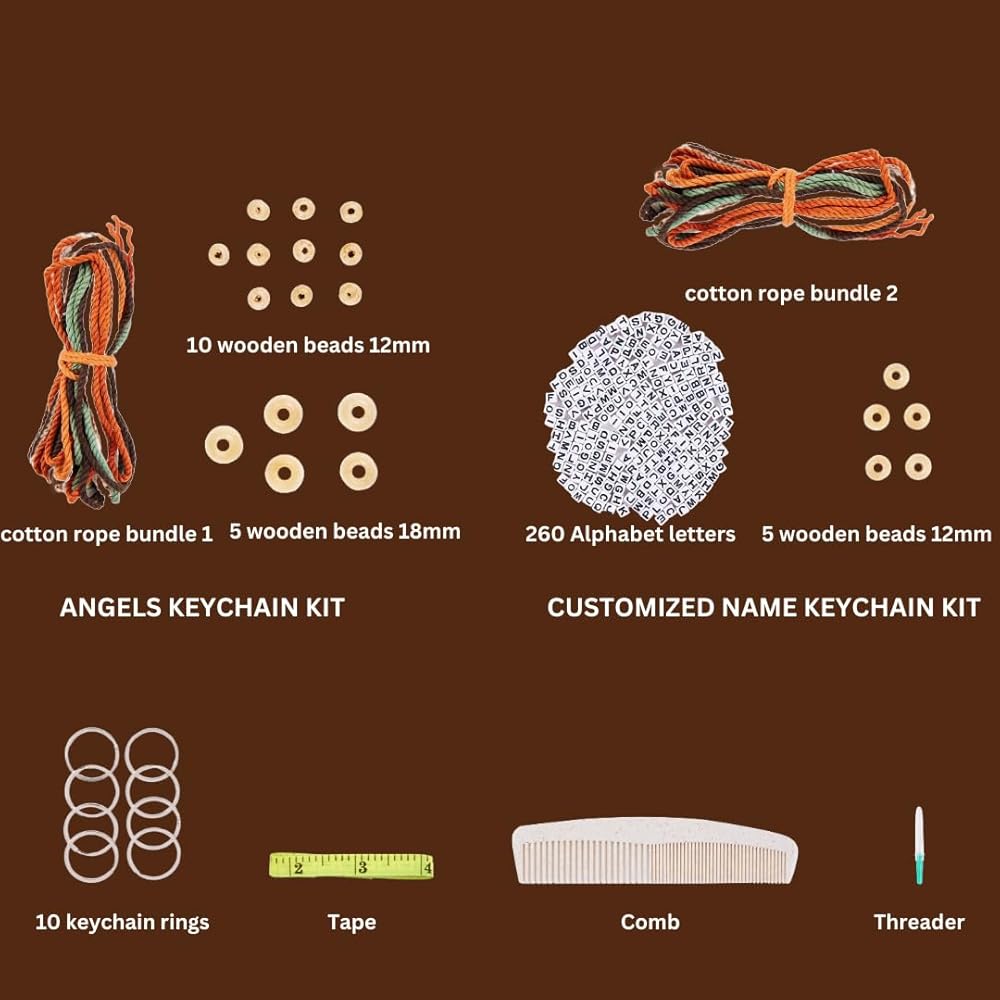 All-in-One Macrame Keychain Kits for Adults Beginners: Start your macrame journey with our macrame keychain crafting kit - includes key rings, beads, cotton ropes, comb, ruler, threader, letters, and more. The materials are enough for 8 keychains including maximum 5 cute keychain dolls and max. 5 personalized name keychains (provided materials are flexible for you to determine which one you like to make more).
