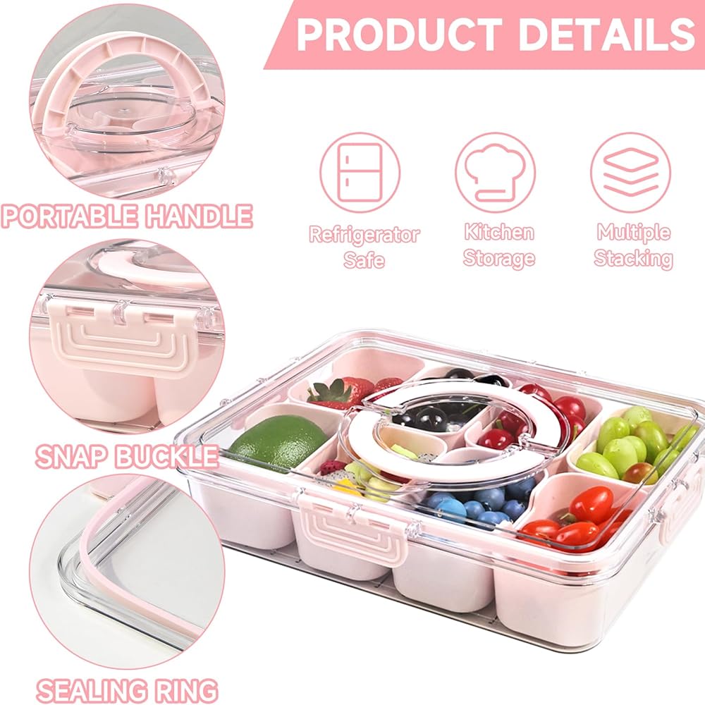 • نظيفة وصحية مع 8 أقسام - تم تصميم صينية تقديم الطعام المقسمة من يوروتشي بغطاء ومقبض مع مساحات تخزين متعددة، مما يوفر تنظيمًا متعدد الاستخدامات للحلوى والفواكه والمزيد. التصميم المنفصل يجعل الوجبات الخفيفة والفواكه المجففة مصنفة بشكل أفضل دون خلط النكهات.