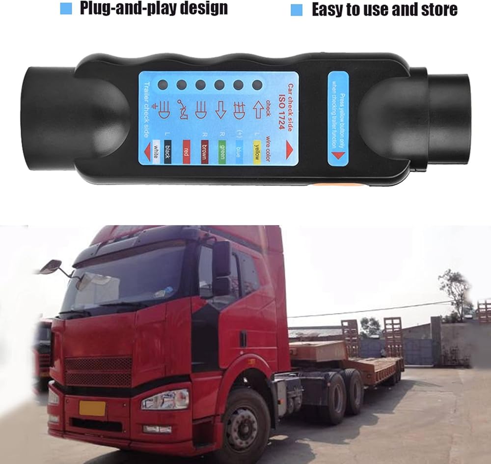 【اختبار دائري شامل بـ 7 اتجاهات: تم تجهيز جهاز اختبار قابس المقطورة الخاص بنا للتعامل مع وصلات المقطورة بـ 7 اتجاهات، مما يوفر حلاً شاملاً لاختبار الوظائف الكهربائية المختلفة. تأكد من عمل جميع المسامير والدوائر باستخدام هذه الأداة التشخيصية متعددة الاستخدامات.