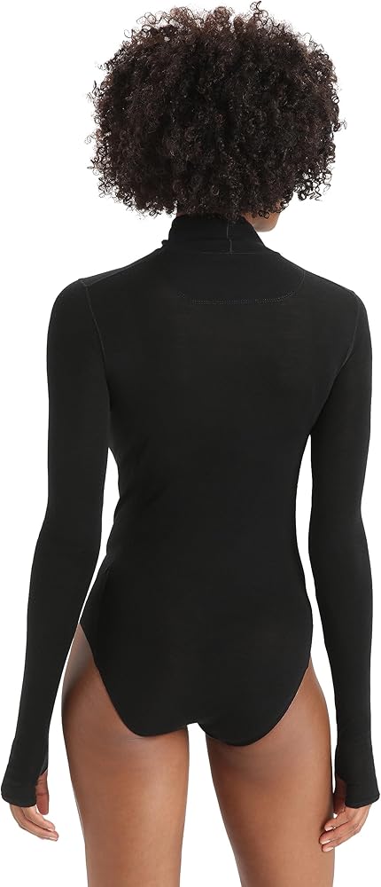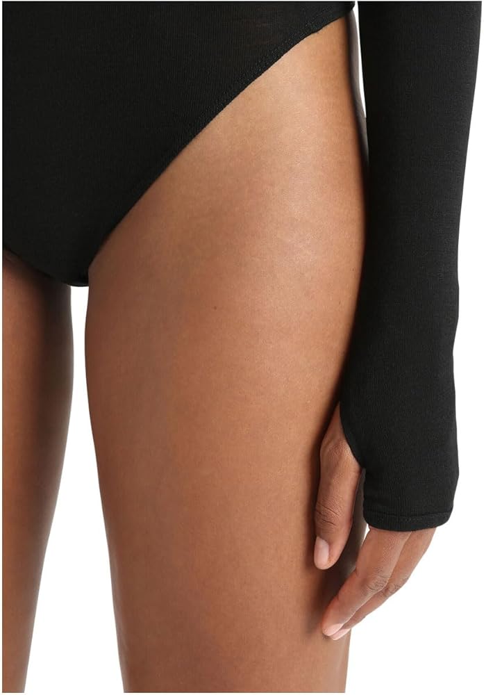 Versatile enough to be worn as a top or as a base layer, the Queens Long Sleeve High Neck Bodysuit features 100% Merino wool for soft and breathable comfort that's naturally odour resistant. The high collar adds protection in chilly weather, while the snap-button gusset keeps the top in place and makes for easy on and off. Thumb holes keep your sleeves in place and add a touch of warmth, while offset seams make for a smooth feel next to skin. Inspired by nature, icebreaker harnesses the performance qualities of natural fibres to offer an alternative to clothing based on petrochemical synthetics. Merino is an annually renewable fibre that naturally resists odours, keeps you cool when it's hot and warm when it's not, and lets your skin breathe for comfort all day, every day.