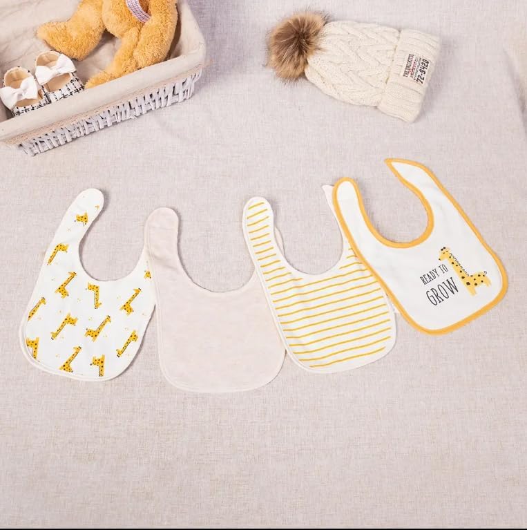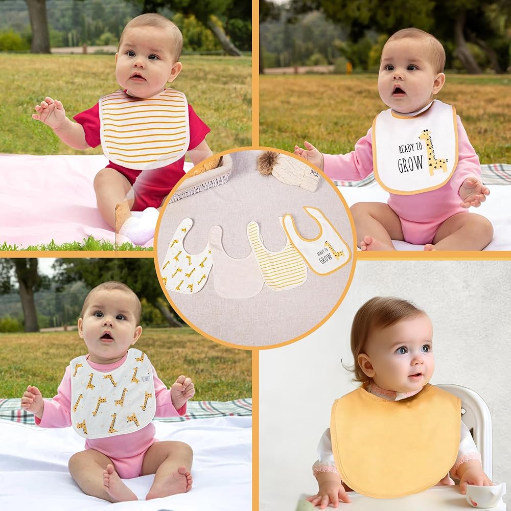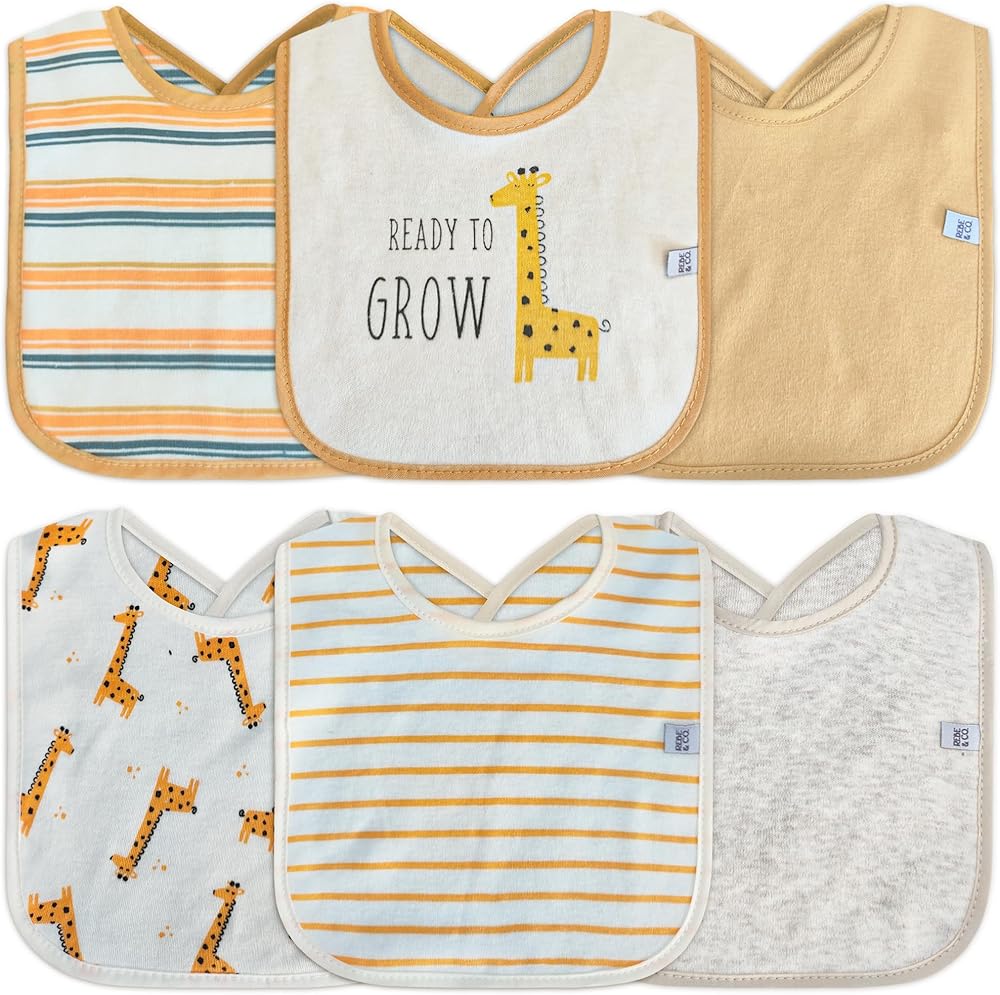 مجموعة من 6 مرايل أطفال من القطن المقاوم للماء من REBE & CO للفتيات والأولاد من أجل تناول الطعام مع أزرار كبس ومرايل التسنين ومرايل التغذية ودش الطفل حديث الولادة (الزرافة)