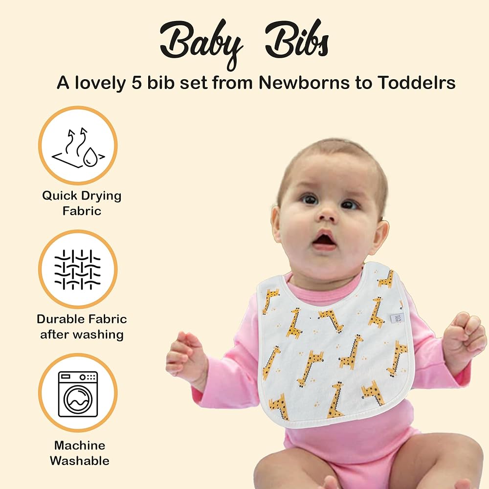 Our REBE & CO baby bibs offer exceptional comfort and functionality. Crafted with a breathable cotton front layer and a waterproof back layer, they keep your baby dry all day and care for their delicate skin. The adjustable design and 6 different patterns make these bibs an excellent choice for busy parents. Their waterproof material prevents your baby's clothes from getting stained with sauces or soups, saving time and money by not having to buy separate bibs for girls and boys. A practical and economical choice for taking care of your baby!