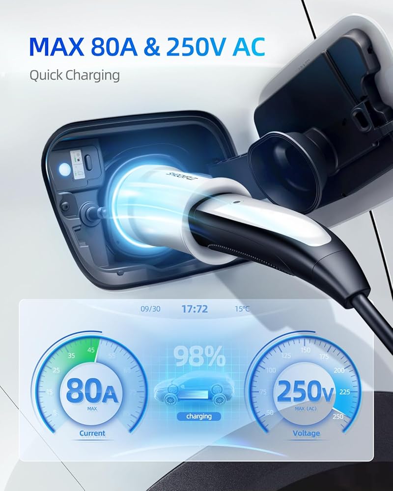 ✨✨【السلامة والحد الأقصى للطاقة】محول ShockFlo J1772 EVs التيار والجهد يصل إلى 80 أمبير 250 فولت. تم تصميم المنتج ليحتوي على ميزات حماية مختلفة مثل 𝐨𝐯𝐞𝐫-𝐜𝐮𝐫𝐫𝐞𝐧𝐭 و𝐨𝐯𝐞𝐫-𝐯𝐨 𝐥𝐭𝐚𝐠𝐞 يجعل شحن السيارة أكثر أمانًا. 𝐅𝐥𝐚𝐦𝐞 𝐫𝐞𝐭𝐚𝐫𝐝𝐚𝐧𝐭 𝐦𝐚𝐭𝐞𝐫𝐢𝐚𝐥𝐬 𝐩𝐫𝐞𝐯𝐞𝐧𝐭 𝐮𝐧𝐞𝐱𝐩𝐞𝐜𝐭𝐞𝐝 𝐡𝐢𝐠𝐡 𝐭𝐞𝐦𝐩𝐞𝐫𝐚𝐭𝐮𝐫𝐞𝐬 𝐦𝐚𝐤𝐞𝐬 𝐚𝐝𝐚𝐩𝐭𝐞𝐫.
