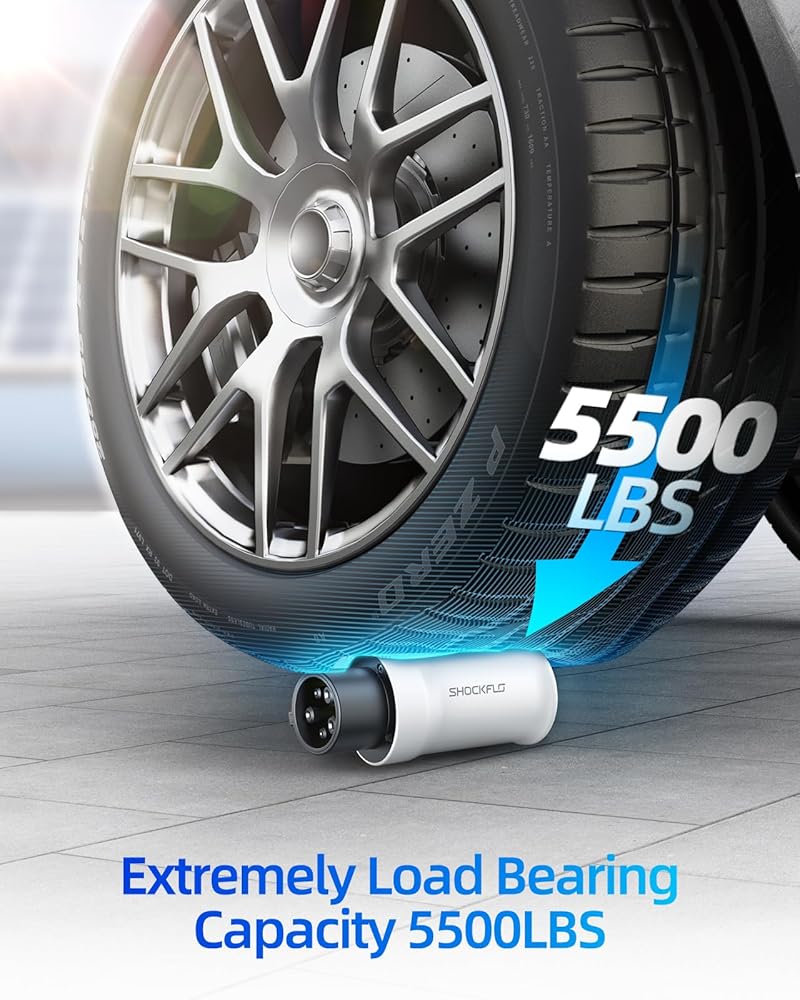 ✨✨【الأمان والمتانة】أكثر من 20,000 مرة من تجارب التوصيل/الإخراج، وتتميز بمقاومة ضغط الحمل التي تصل إلى 5,500 رطل، ولا تزال آمنة وموثوقة. يمكن استخدام محول ShockFlo tesla to j1772 في البيئات القاسية (-22 درجة حرارة منخفضة للغاية وبيئة درجة حرارة عالية 122 درجة فهرنهايت). مصممة لمقاومة الماء IP55.