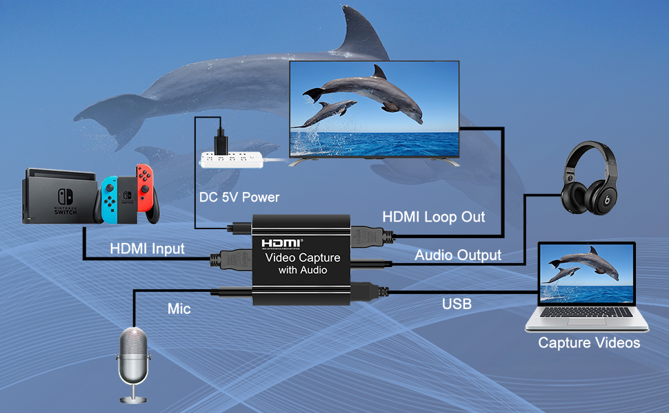 ◀ دقة عالية: تدعم بطاقة التقاط USB هذه لجهاز Nintendo Switch أعلى دقة إدخال تصل إلى 4K@30 هرتز، وإخراج دقة التسجيل حتى 1080p@30 هرتز، وتدعم تدفقات منفذ USB 2.0 إشارة فيديو 1080p@60 إطارًا في الثانية. فهو يقوم بإدخال مخرجات خالية من التأخر والتأخر، مما يسمح لك بتسجيل أو التقاط أفضل اللحظات بسلاسة.
