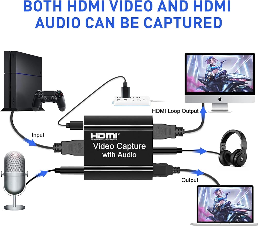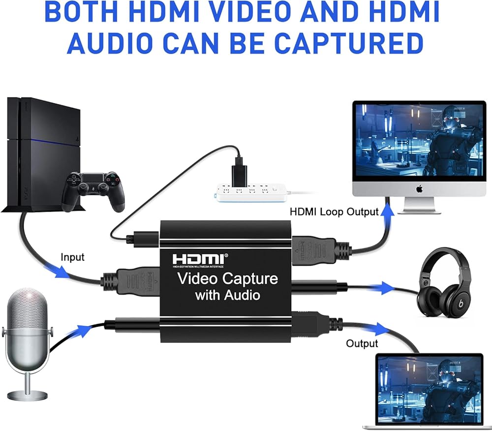 بطاقة التقاط HDMI، بطاقة التقاط فيديو HDMI مع حلقة للخارج، مسجل فيديو صوتي لبطاقة التقاط HDMI 4K إلى USB للألعاب/البث المباشر/مؤتمر الفيديو، متوافق مع نينتندو سويتش/PS4/PS5/Xbox One