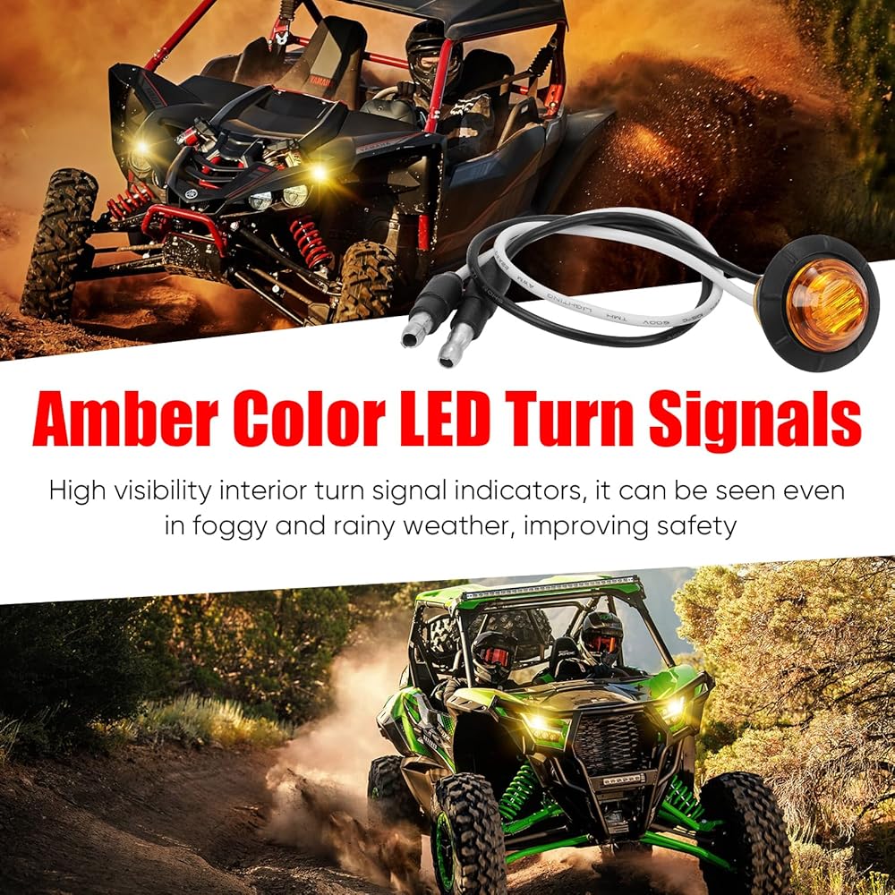 【الضوء الكهرماني】: رؤية محسنة في جميع الظروف. تتميز مجموعة وميض UTV بإشارات دوران كهرمانية معروفة برؤيتها العالية في مختلف الظروف الجوية. تبرز هذه الأضواء من مسافة بعيدة، حتى في المطر أو الضباب، لتنبيه المركبات خلفك وتعزيز الوعي بالسلامة.