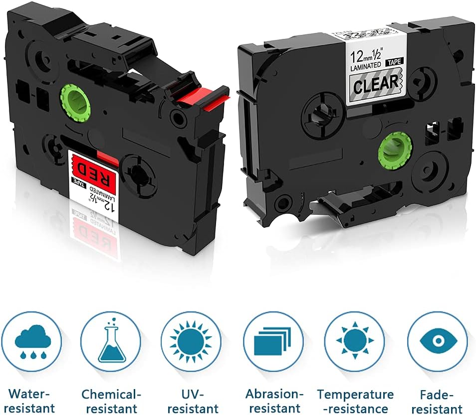 جودة فائقة - استبدال شريط الملصق المتوافق الأكبر لـ Brother Tze231 131 531 631 731 431 (أسود على شفاف/أبيض/أخضر/أصفر/أزرق/أحمر) يعتمد تقنية التصفيح، ويتم الضغط على الملصقات الرفيعة وعالية الكثافة من فيلم متعدد الطبقات إلى جعل المطبوعات واضحة وطويلة الأمد.