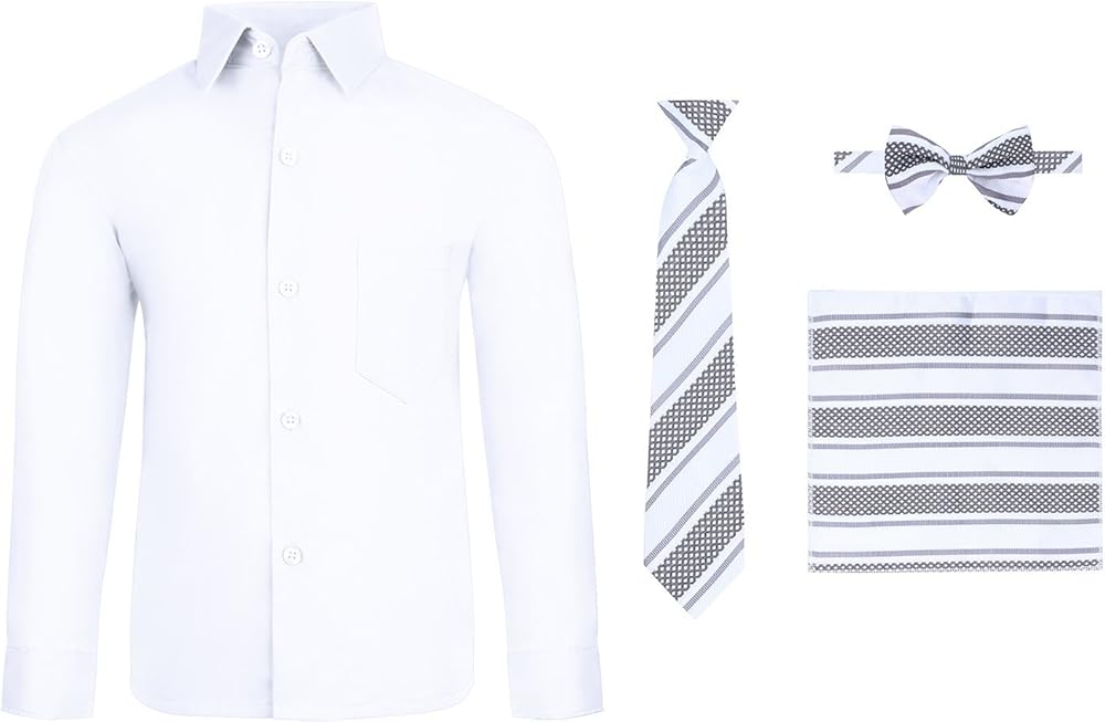 • SUPERB VALUE. Kids' clothes shouldn't be an investment—they should be a promise of durability, affordability, and comfort, which is a principle very well-embraced by this refreshingly priced and high-quality boy's dress shirt, boy's dress pants, pre-tied bow tie, pre-tied necktie set, and belt.
