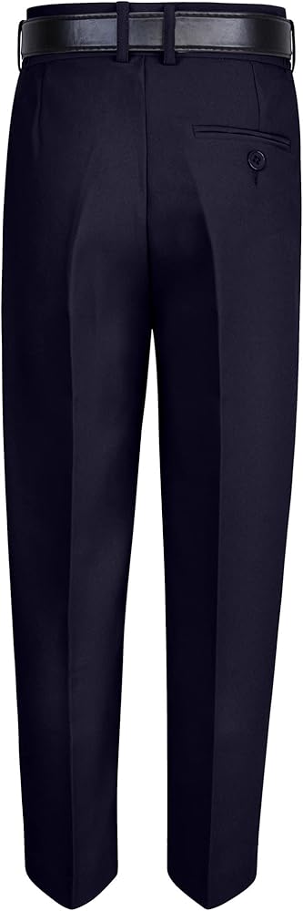 • CONTEMPORARY STYLE. These boys' dress slacks were designed with comfort and fit in mind; however, style certainly wasn't sacrificed. The modern style features a flat front (non-pleated) style along with 2 front pockets, 2 back pockets, and a standard button closure with zipper. There are obviously also belt loops for the complimentary belt that is included with the purchase.