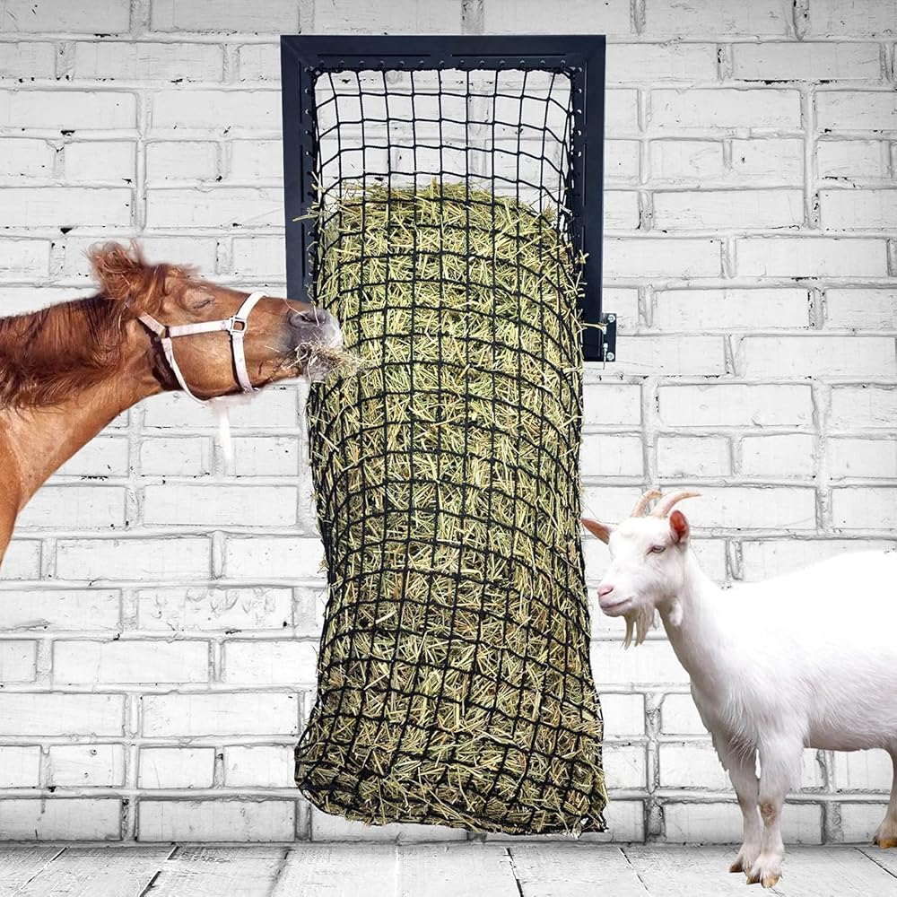 • تصميم شبكي من النايلون: الحقيبة الشبكية قوية ولن تبهت. كما أن الفتحات مقاس 1.6 بوصة الموجودة في وحدة تغذية أكياس القش لدينا تتحكم في سرعة التغذية وكمية الطعام، مما يساعدك في الحصول على التغذية العلمية وتحسين صحة الحيوان.