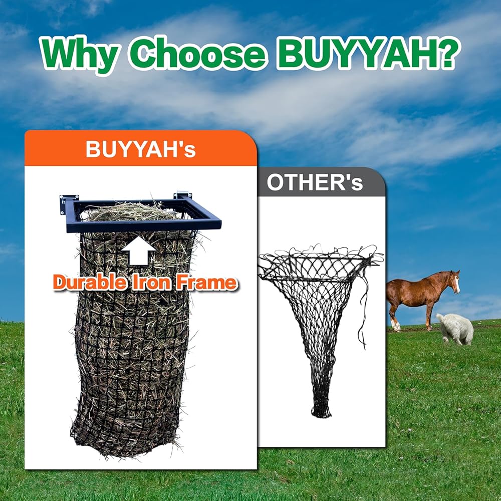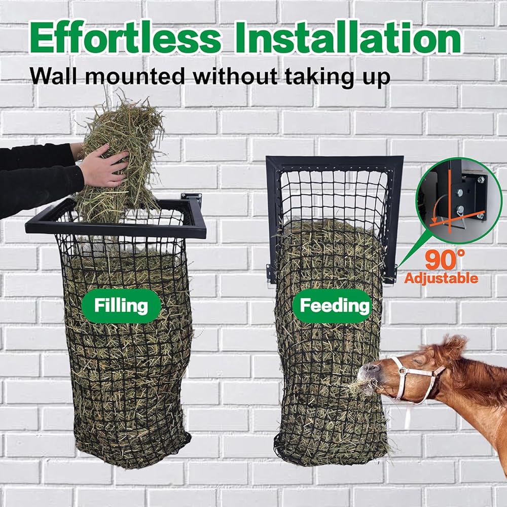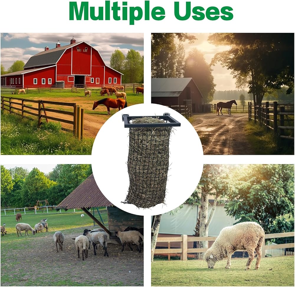 • شديدة التحمل وقوية: مصنوعة من هيكل حديد كامل يدوم طويلاً، رف قش الحصان قوي وغير مشوه ويمكن استخدامه لفترة طويلة.