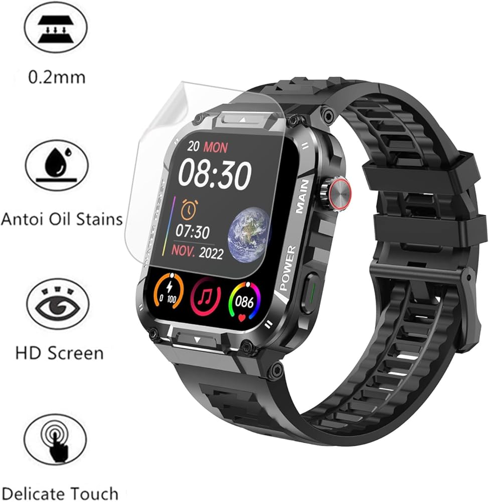Include 6 Pack Flexible PET Screen Protector. Compatible for Hvlgmrc / MASVVPI / Ypaddbu / Azgqswr P66 Smartwatch 1.96", Please check your watch model before purchasing. (Note: 1.96" refers to the watch screen size and specifications, not the size of the protective film)