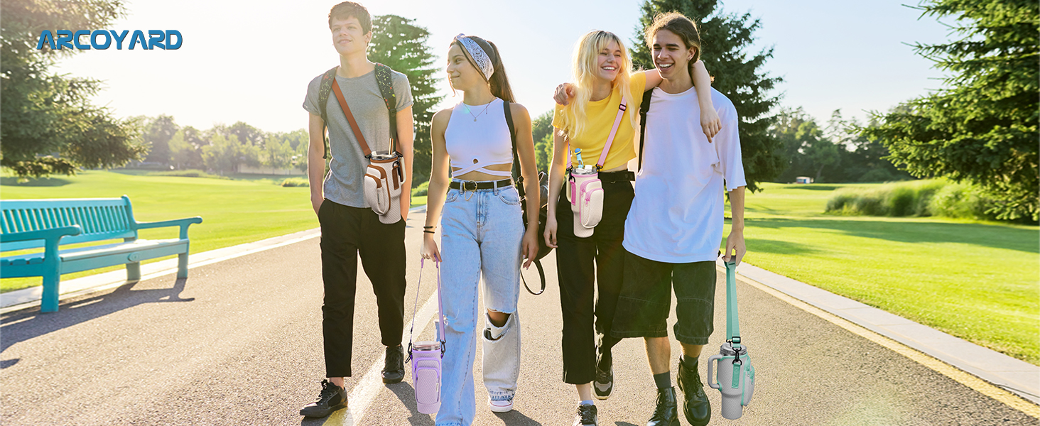 【مصمم خصيصًا لأكواب Stanley & Corkcicle سعة 40 أونصة بمقابض】 حامل زجاجة المياه هذا مع حزام قابل للتعديل يناسب Stanley Quencher H2.0 40 أونصة، وStanley Adventure Quencher 40 أونصة، وCorkcicle CRUISER 40 أونصة. الخياطة رائعة، والسطح منقوش بأنماط على شكل ماسي، مما يوفر ملمسًا أكثر إحكامًا ونعومة. بفضل تصميمات الألوان العصرية، فإنه يوفر جاذبية جمالية فريدة من نوعها، ومناسب لمختلف الأنشطة مثل المشي وركوب الدراجات والتخييم والتنقل وحتى نزهات الشاطئ وجلسات الجيم.