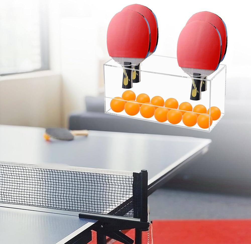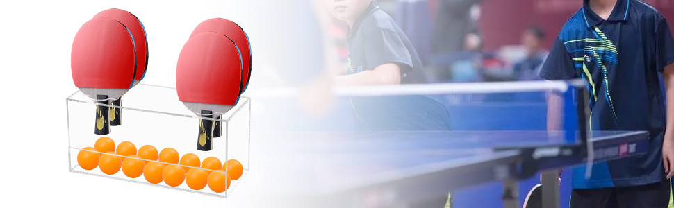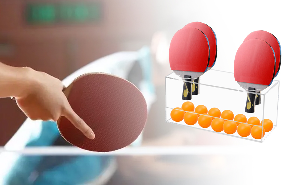 مادة أكريليك شفافة: رف التخزين مصنوع من مادة أكريليك عالية الجودة، مما يسمح لك برؤية معدات تنس الطاولة وتنس الطاولة والوصول إليها بسهولة، مما يجعلها مريحة وفعالة.
