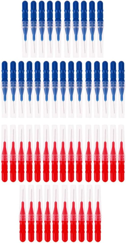 ➤Soft-Massage have flexible, comfortable bristles to gently dislodge food & massage gums. 25 x 3mm /0.12 in Red Floss Sticks and 25 x 2.5mm/0.1 inBlue Floss Sticks, 50pcs in Total. Suitable and safe for all the family to use.