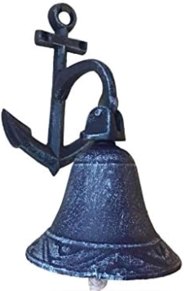 جرس مرساة معلق على الحائط من الحديد الزهر باللون الأزرق الداكن مقاس 8 بوصات - جرس عتيق - بحري