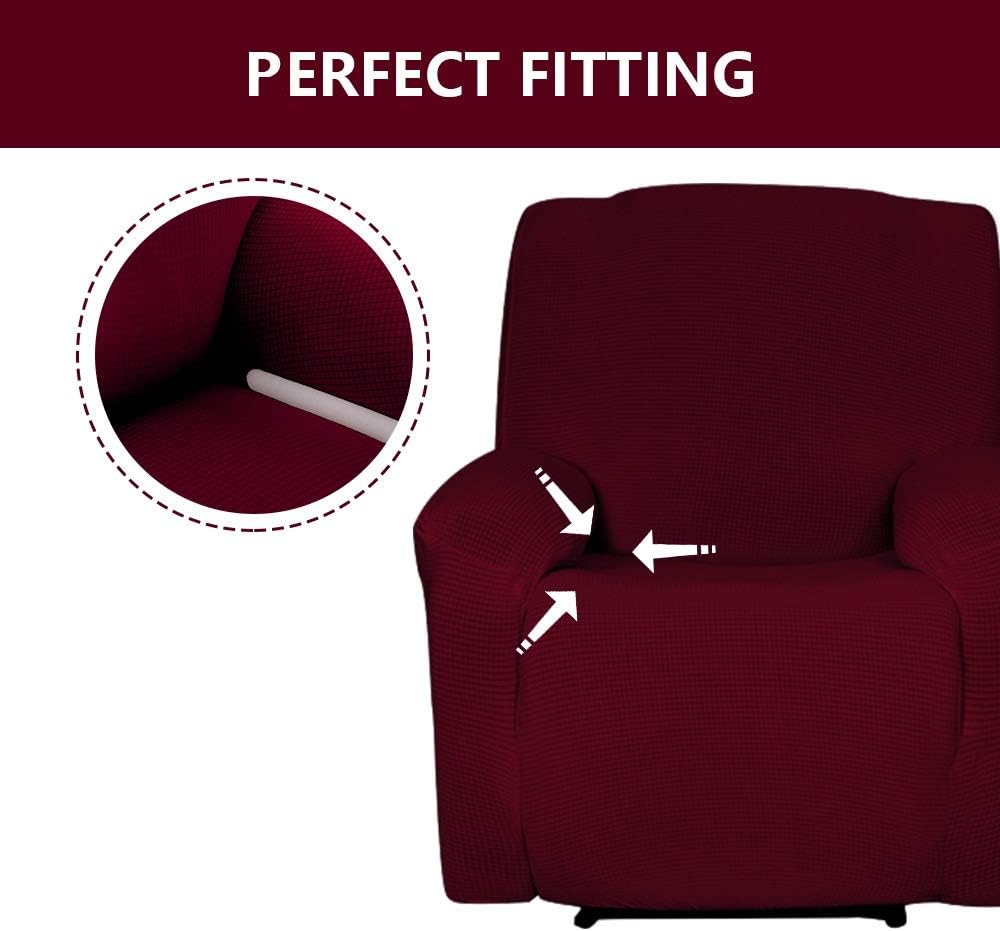 غطاء حماية للكرسي من Sapphire Home Recliner، قابل للتمدد بشكل مناسب، خالي من التجاعيد، غطاء واقي، جيب بعيد، نسيج بوليستر سباندكس، نمط مربع غير قابل للانزلاق، كرسي عنابي اللون