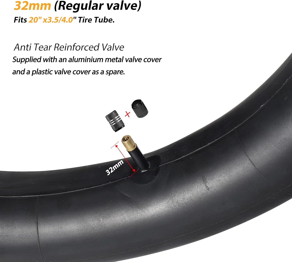 【حول الحجم 】 32 مللي متر (صمام عادي). يناسب أنبوب الإطارات مقاس 20 × 3.5/4.0 بوصة. يتم توفير أدوات الإطارات لمساعدتك على تغيير الإطارات بسهولة أكبر