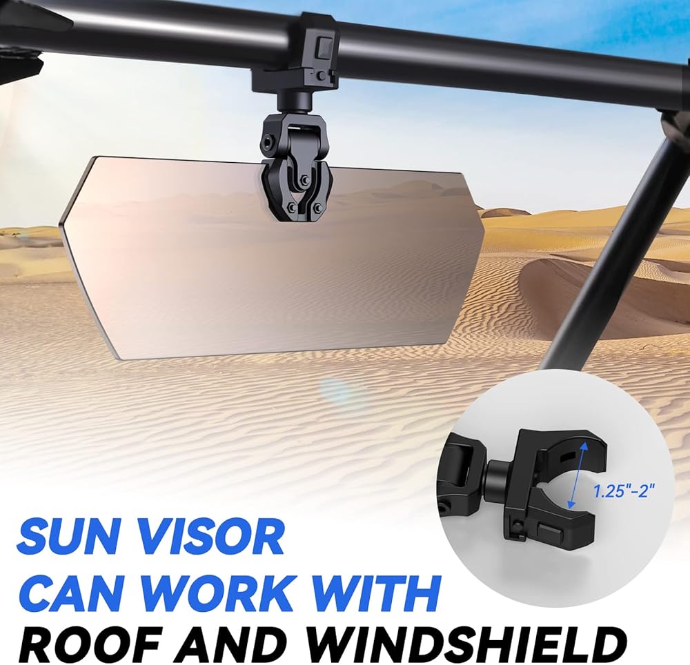 UTV Sun Visor، 1.25 "-2" شريط لفة يعمل مع الزجاج الأمامي مناسب لـ Polaris Ranger RZR 1000 XP Turbo Can am Defender Maverick X3 Kawasaki Mule Pioneer 1000 YXZ Teryx، ملحقات UTV